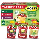 The original, delicious treat, Mott's No Sugar Added Applesauce Variety Pack is the perfect snack or meal companion. Available in 12- or 20-packs, Mott's Applesauce comes in refreshing flavors like our appetizing Apple, sweet Strawberry, and tart Mixed Berry so you'll be sure to find something that satisfies your taste buds. Made with 100% real fruit and no artificial flavors, you can feel good about making healthy choices. A good source of Vitamin C and free of cholesterol, Mott's No Sugar Added Applesauce Variety Pack brings the best of the orchard to your household to help families enjoy delicious fruit goodness every day. Mott's has a strong heritage and has been the trusted apple juice and sauce brand since 1842. Dedicated to giving parents easy ways to help their families be their very best, Mott's holds the apples to a very high standard. That's why we pack lots of delicious fruit flavor from ripe apples into every serving. So, whether you're home with your family or on the go and in need of a snack, Mott's has a delicious flavor to enjoy. With an extensive suite of flavors, Mott's No Sugar Added Applesauce Variety Pack gives you flavorful choices for all your snacking needs! REAL FRUIT: Mott's No Sugar Added Applesauce Variety Pack pouches are made with 100% Real Fruit with no sugar added. GOOD FOR YOU: A good source of Vitamin C and free of cholesterol, Mott's No Sugar Added Applesauce Variety Pack brings the best of the orchard to your household to help families enjoy delicious fruit goodness every day. PACKED WITH FLAVOR: Mott's Applesauce comes in refreshing flavors like our appetizing Apple, sweet Strawberry, and tart Mixed Berry so you'll be sure to find something that satisfies your taste buds. NATURAL GOODNESS: Mott's No Sugar Added Applesauce Variety Pack pouches are glutenfree, certified Kosher, and contain no artificial flavors. TRUSTED BRAND: Since 1842, Mott's has committed to providing high-quality, nutritious juices and snacks, with the delicious taste of real fruit. One 20-Pack of 3.2 oz clear pouches