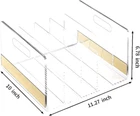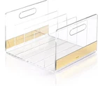 Mouchoi Modern Acrylic Desk File Organizer, Clear Gold Mirror Product Details Specific Uses For Product: Office or Study Organization Material: Acrylic Special Feature: Portable, Lightweight, Holder Color: Gold Mirror Brand: Mouchoi Finish Type: Acrylic Product Dimensions: 10"D x 10.6"W x 4.3"H Shape: Rectangular Number of Items: 1 Maximum Weight Recommendation: 3.1 Pounds Mounting TypeItem Weight: Tabletop Mount3.1 Pounds Number of CompartmentsUnit Count: 51.0 Count [FIVE SECTIONS ACRYLIC DESK ORGANIZER] - There are five compartments of the same specification for holding various contents: file, folder, mail, paper, book, magazine, etc. Great for keeping documents organized and make your desktop clean and neat. [STURDY MATERIALS] - Made of strong and premium acrylic sheet, this clear file organizer can last for many years. There are two handles on both sides, convenient to take up. The round-edge design can prevent any harm to your hands while moving or touching the organizer. [ELEGANT DESIGN] - The combination of clear and gold makes this desk file organizer elegant and senior. The main transparent appearance contributes to a clear vision so you can see and get what you need quickly. Two gold mirror bottom edges add more uniqueness to this item, making it different from other brands. It could be a great present for friends or partners. [MULTIPLE USE] - As a functional collator, it is not only practical, but also stylish, modern and beautiful, perfectly fits in office, classroom, study, reading room. [DIMENSIONS] - 11.27 × 10 × 6.78 inches
