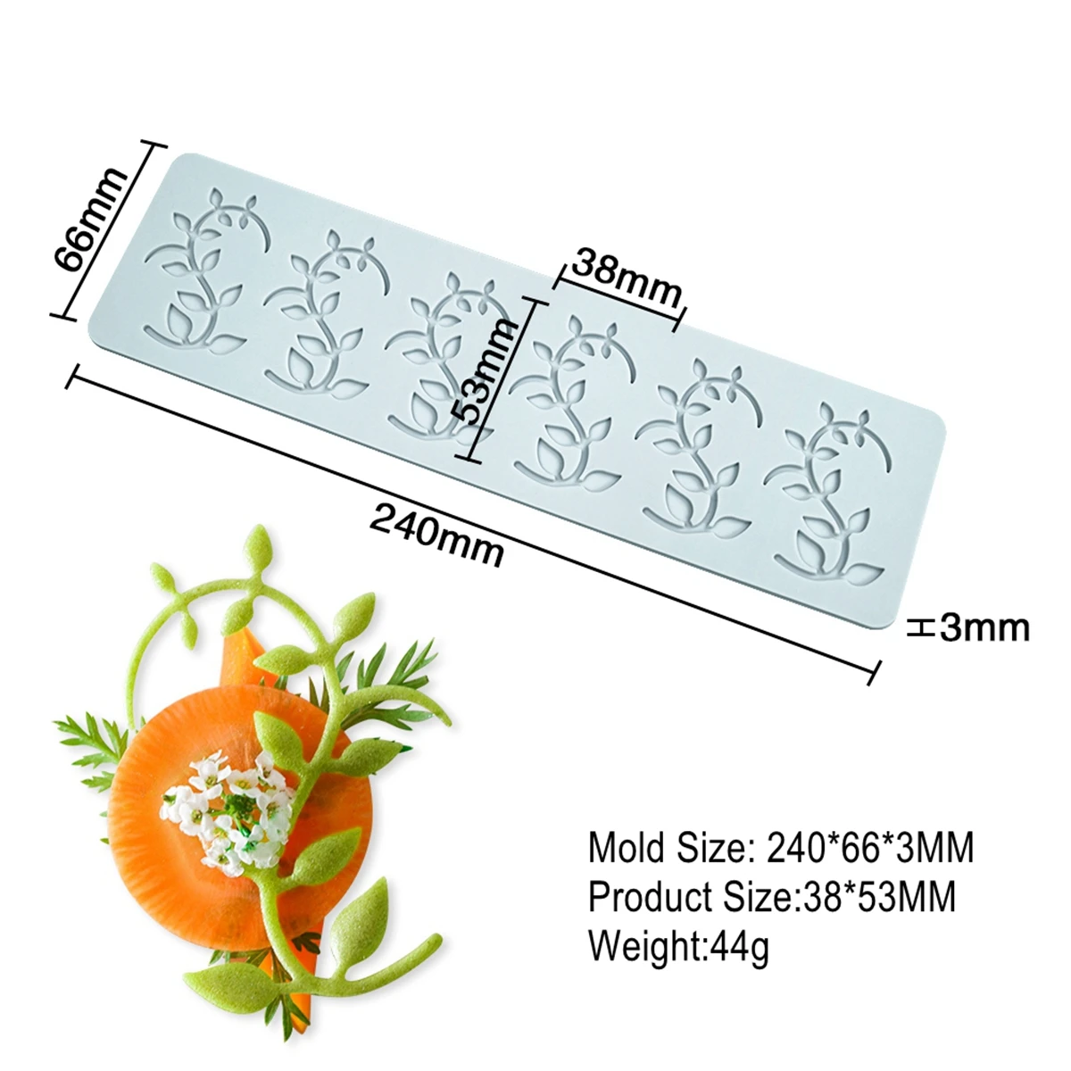 This leaf silicone mold is made of BPA Free silicone. Non-stick material allows for easy release and simple to clean. The heat-resistant temperature range is -40 to 220 degrees Celsius/-40 to 445F. Silicone molds can be used safely in ovens, microwaves, and freezers. The thickness of our leaf molds silicone is 0.118 inch. Our polymer clay molds can be used for candy, chocolate, fondant, lace modeling. Other supplies leaf mold thick 0.0787 inch which can not be used for chocolate lace modeling.That is a nice gift for friends and family by making fondant mold, candy or decorating cake together. Good value for money and works well for fondant chocolate candy shapes or leaf modeling. this Leaf mold is soft and easy to use . 3D hollow leaf gummy mold will help bring your cake decorating skills to a new level, enabling you to bring a professional quality to your work. Great tools for making cake toppers, cake pops, cupcake toppers, cookies, jelly. perfect fit for party decoration, birthday and baby party, make your party cake and dessert more perfect. This silicone mold is made of BPA Free silicone. Non-stick material allows for easy release and simple to clean. The heat-resistant temperature range is -40 to 220 degrees Celsius/-40 to 445F. Silicone molds can be used safely in ovens, microwaves, and freezers. The thickness of our molds silicone is 0.118 inch. Our polymer clay molds can be used for candy, chocolate, fondant, lace modeling. Other supplies mold thick 0.0787 inch which can not be used for chocolate lace modeling.That is a nice gift for friends and family by making fondant mold, candy or decorating cake together. Good value for money and works well for fondant chocolate candy shapes or modeling. this mold is soft and easy to use . 3D hollow gummy mold will help bring your cake decorating skills to a new level, enabling you to bring a professional quality to your work. Great tools for making cake toppers, cake pops, toppers, cookies, jelly. perfect fit for party decoration, birthday and baby party, make your party cake and dessert more perfect. 1- Candy Mold: used for baking production swing plate, suitable for the use of pigment mixed sugar, syrup production. 2-Easy To Use:very flexible, and easy to clean. It can be used in ovens and refrigerators, and can be used in the temperature range of - 40 ~ 230 ℃., Our fondant molds are easy to use, very flexible and easy to clean. This tool will be a perfect choice to help bring your cake decorating skills to a new level, enabling you to bring a professional quality to your work. 3-Materials: silica gel. It is safe, durable and durable. The non stick and easy demoulding function of the flexible silicone mold will not damage the cake. You can easily take it out of the mold. 4-Great For: Cake decorations, wax melting, homemade soap, resin casting, polymer clay projects, ideal for use with gum paste, sugarpaste, petal paste or marzipan, chocolate, soap, clay, wax, epoxy resin, air clay, paper clay, resin clay, concrete etc.party decoration, birthday and baby party, make your party cake and dessert more perfect. 5-Easy To And Release:fondant impression mats mold made of nonstick material and is pliable, which makes it fairly easy to unmold. Spread a small amount of butter on the surface of the mold before baking to achieve a better non-stick effect. Simply pour your favorite ingredients in the mold, and keep the ingredients static until completely formed. This flexible silicone mold offers a non-stick surface that allows the goods to pop right out with a little push from the bottom. 6-Easy to clean: Dishwasher safe. Fondant silicone mold can be washed with water or detergent after use, very easy to clean, and it is a very convenient 3D DIY scroll flower pattern kitchen tools.
