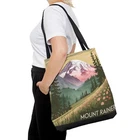 Elevate your space with our stunning Mount Rainier Vertical Poster, an artful tribute to nature's beauty. This eco-friendly piece features a vibrant all-over print of the majestic landscape, perfect for adding a touch of serenity to any room. Made with sustainable materials, it’s not just decor; it's a testament to your love for the great outdoors. Bring a slice of Washington’s wilderness into your home today! #MountRainier #NatureArt #EcoFriendly #WallDecor #LandscapePoster #SustainableLiving #ArtPrint #NatureLovers #HomeDecor #OutdoorInspiration Add functional perks to an already great design and you get a staple for everyday use. With its interior zippered pocket for added safety, and the adjustable straps for extra comfort, this tote bag has it all. 100% Spun Polyester Available in two sizes: 13''x13'' and 18x18'' Adjustable strap Black interior lining and inner pocket Assembled in the USA from globally sourced parts