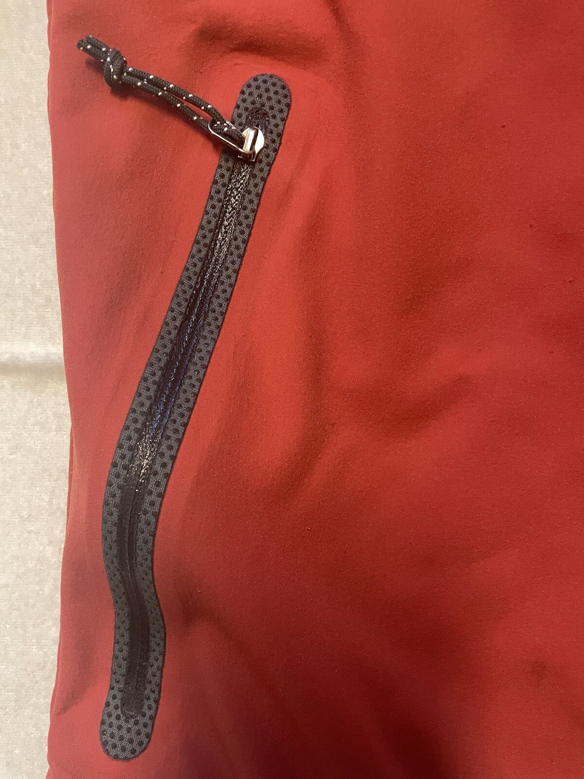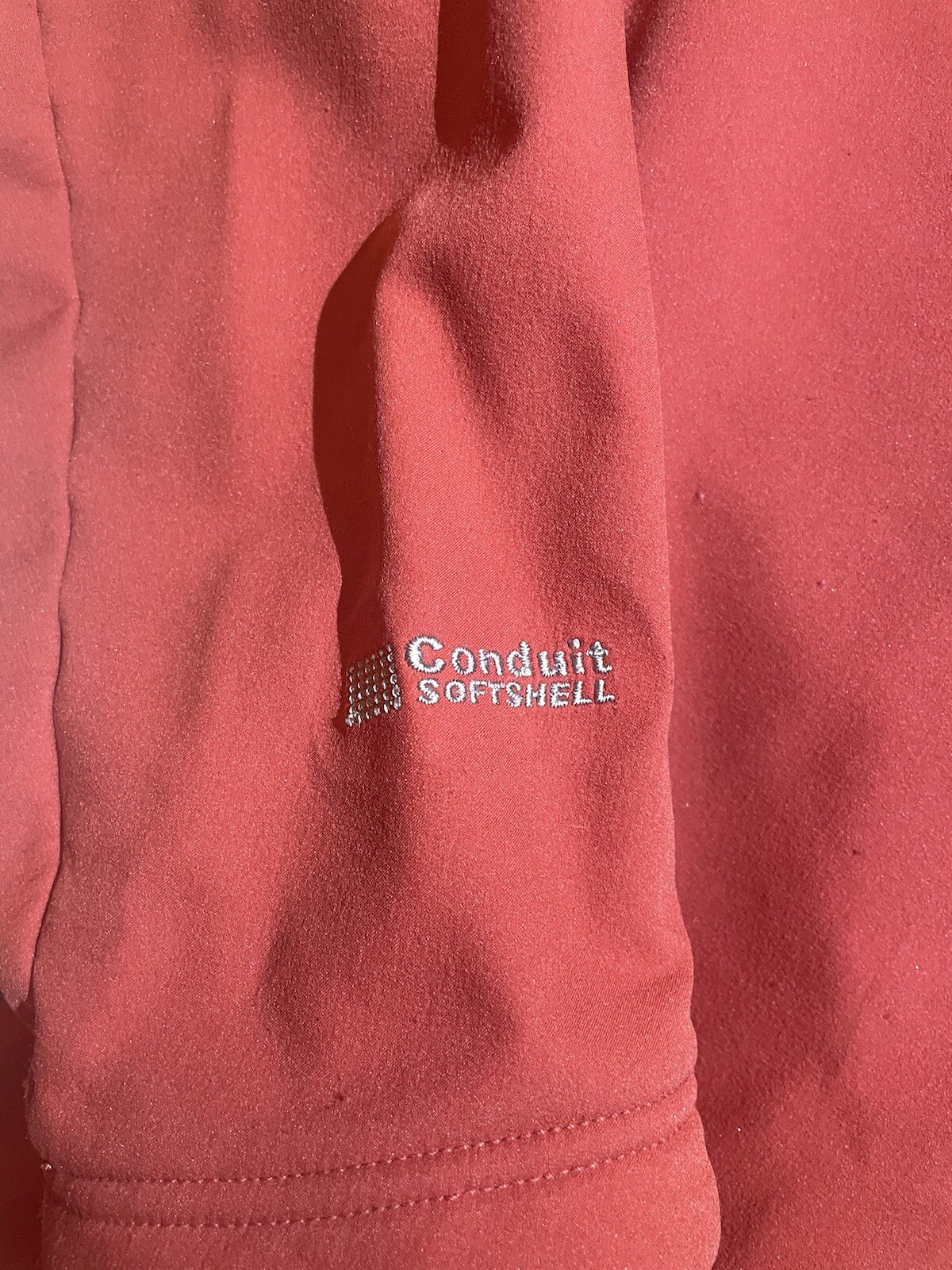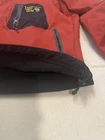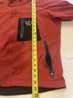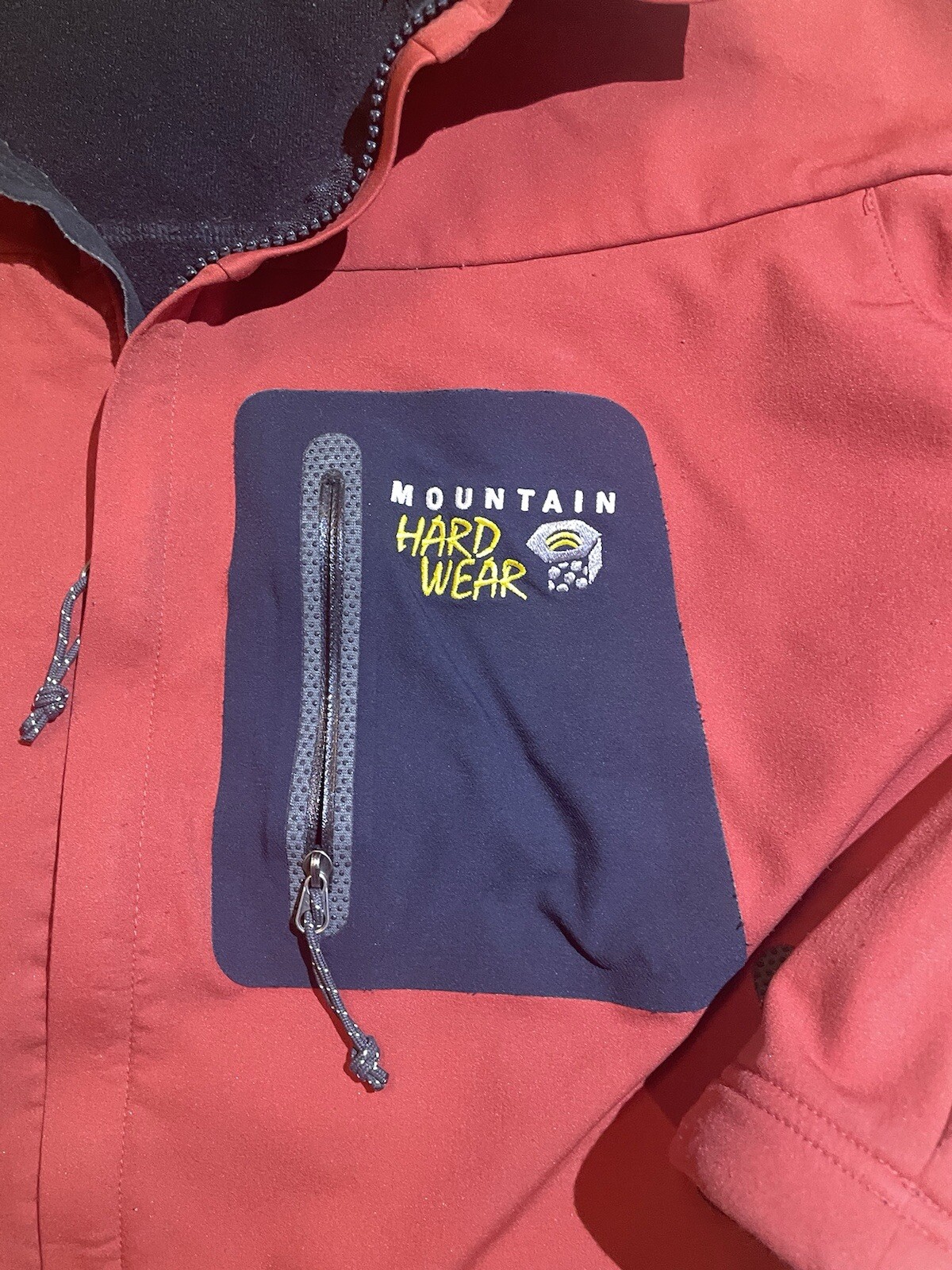 -Used. Sold as is -No rips or stains -See photos for measurements -Fast shipping!!! This Mountain Hardwear Conduit Softshell Jacket is a versatile piece that's perfect for any outdoor activity. With a stand-up collar and full zip closure, this windproof and wind-resistant jacket is made of durable material and is lined. It comes in a vibrant red color with the brand's logo. The zipper has weather seal to keep your belongings dry! The jacket features multiple zipped pockets, making it perfect for storing your essentials while you're hiking, backpacking, camping, or doing any other outdoor activity. The jacket is lightweight and suitable for all seasons, whether you're facing a winter storm or a slight fall breeze. It's a mid-length jacket that fits regularly, and it's size small. This jacket is an excellent addition to your wardrobe if you take your outdoor wear seriously.