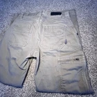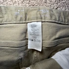 These Mountain Hardwear pants are perfect for any outdoor adventure, whether it's hiking, camping, or nature watching. The brown canvas material is durable and comfortable, with a solid pattern and button logo accents. The pants feature a low rise and straight leg style, with a zip closure and flat front. The pants are size 30x30. They are suitable for travel, casual wear, or work, with a khaki style and nature/sports theme. The pants have pockets for convenient storage, and are made of cotton material.