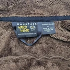 Mountain Hardwear, womens, brown, deep pile fleece full zip-up jacket. Super soft fleece fabric interior, 2 zippered pockets on the front, 1 small pocket on the sleeve, and small mountain hardwear insignia embroidered on front and back. Great quality overall. No stains or holes that Notice. Size medium for women on the tag. Pit to pit:20.5" Middle collar to bottom hem:23.5" Shoulder to bottom hem:23.5" 005