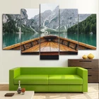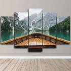 Mountain Nature Lake Boat View Beauty 5 Piece Canvas Wall Art Print Home Decor