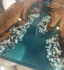 Entryway Epoxy Table Top, Live Edge Epoxy Walnut Table, Epoxy Countertop, Epoxy Resin River Table Top, Epoxy Vanity Countertop, Epoxy Balcony Table, Epoxy Living Room Table, Modern Epoxy Table Top, Epoxy Dining Table for 6, Epoxy Dining Table for 8. This will be a very unique and attractive table top for your home. For sure, be eye catching and attract everyone visiting your home. You will definitely going to receive a round of applause for bringing this beautiful table top to your home. Very different from simple looking wooden slab. Pricewise, we offer our epoxy table top at very reasonable price. We can also negotiate. Please write to us with your query. We can customize epoxy table top as per your requirements. We can customize it as per size, design, wood placement, epoxy resin colour. We can make any size 2 ft X 4 ft (24 inch X 48 inch) 5 ft X 2.5 ft (60 inch X 30 inch) 5 ft X 3 ft (60 inch X 36 inch) 6 ft X 3 ft (72 inch X 36 inch) 7 ft X 4 ft (84 inch X 48 inch) We can also make long countertop upto 20 ft. Table Thickness : 30 mm, Height : 30 inches We provide designer iron legs complimentary with epoxy table top. You can select any of the design and message us. All our legs are unique. Our epoxy table top are unique and durable as we use only seasoned and treated wood for long durability. Also, we use only quality epoxy resin for best finish. How we process the order ? Once you place the order, we provide you wood work for your confirmation. If there is any customization you need, we do it as per your requirement. Once wood work is approved, we cast epoxy resin and finish it. Before dispatch, we will share the pics and videos for your confirmation. Once approved, we do export packing and dispatch it via DHL for fast and safe shipping. Our processing time is 3-4 weeks and shipping will take 7-10 days to reach your door. Please note that wood is natural. So every epoxy table will be slightly different in terms of shape, colour and texture. We cannot provide exactly the same as demonstrated in the photo. All our shipments are insured. If you receive the goods in damaged condition, we will either provide full refund or replacement as per your decision. If there is any custom duty or local taxes at destination, same will be borne by the buyer. If you want to know anything, please write to us. We will be very happy to answer your questions.