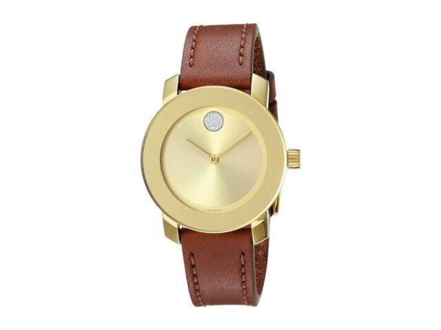 Movado Women’s Bold Trend Gold Dial Leather Strap Watch - 3600437 ($650 MSRP) With Original Box and Tags! This watch is a Shelf Pull from one of the Major Department Stores. Watch has micro scratches on the watch case/band, visible under direct light. The Movado Women’s Bold Trend Gold Dial Leather Strap Watch - 3600437 is a stunning timepiece that embodies Movado's legacy of artistry and innovation. Founded in La Chaux-de-Fonds, Switzerland in 1881, Movado is renowned for its iconic dial and modern aesthetic, earning over 100 patents and 200 international awards for watch design and time technology. This particular model features a gold PVD stainless steel case paired with a luxurious brown leather strap, creating a timeless and sophisticated look. The watch boasts a fixed gold PVD bezel and a gold sunray dial adorned with gold-tone hands. True to Movado's minimalist style, the dial has no markers, but a signature crystal-set Movado dot at the 12 o'clock position adds a touch of elegance and recognition. The analog display is powered by a precise quartz movement, ensuring reliable timekeeping. The scratch-resistant K1 crystal and pull/push crown enhance the watch's durability and functionality. Designed with both style and practicality in mind, the round case measures 30 mm in diameter, making it an ideal size for everyday wear. The solid case back and tang clasp provide a secure and comfortable fit. Additionally, the watch is water-resistant up to 30 meters (100 feet), making it suitable for everyday activities. With its blend of classic design and modern technology, the Movado Women’s Bold Trend Gold Dial Leather Strap Watch - 3600437 is a perfect accessory for the contemporary woman who appreciates elegance and functionality. Features Gold PVD stainless steel case with a brown leather strap. Fixed gold PVD bezel. Gold sunray dial with gold-tone hands. No markers. A crystal-set Movado dot appears at the 12 o'clock position. Dial Type: Analog. Quartz movement. Scratch resistant k1 crystal. Pull / push crown. Solid case back. Round case shape. Case size: 30 mm. Tang clasp. Water resistant at 30 meters / 100 feet. Functions: hour, minute. Fast and Free Shipping You're already purchasing the item. Why pay additional for shipping, especially slow shipping? We get your order shipped out within 1-business day and delivered to your doorstep as quickly as possible. Competitive Pricing With our dynamic pricing model, our prices are always competitive. Our prices are some of the lowest that you will find on the internet. Rest assured that you're getting a good deal when purchasing with us. 30-day Money Back Guarantee We are committed to making sure that you leave this transaction satisfied. If you're unhappy with the product for any reason, you may return it back for your money-back or a replacement within 30 days. No questions asked!