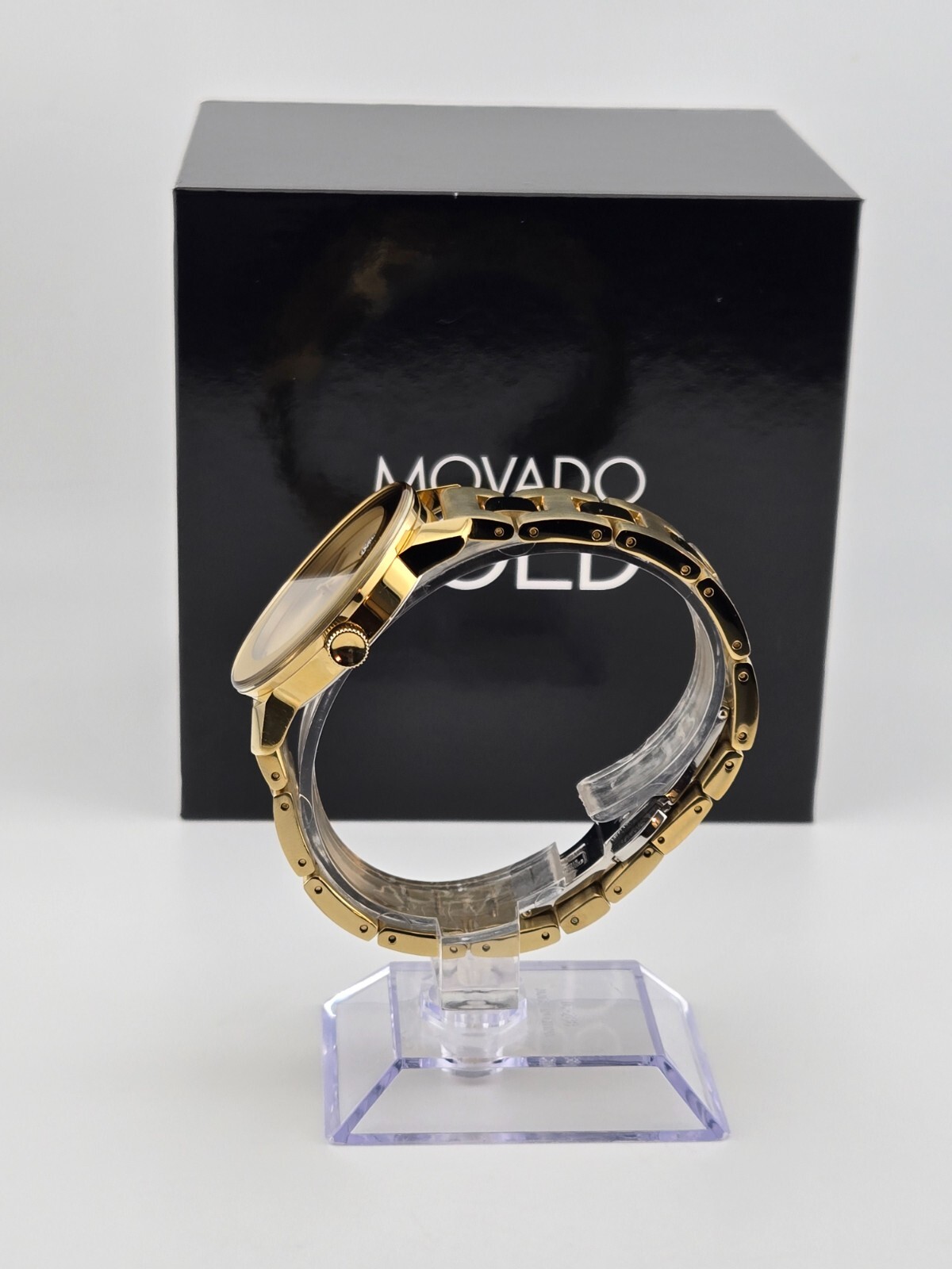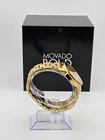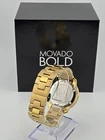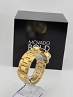 Movado Women's Bold Champagne Dial Stainless Steel Watch - 3600104 ($650 MSRP) With Original Box! This watch is a Shelf Pull from one of the Major Department Stores. Watch has scratches on the watch case/band . The Movado BOLD women’s watch represents chic sophistication and is a gorgeous futuristic vision of our stylish sunray dial. It features a 36 mm yellow gold ion-plated stainless steel case and a K1 crystal with a ring of highly reflective, yellow gold-toned metallization. The yellow gold-toned sunray dial has a matching sunray dot and hands and the yellow gold ion-plated stainless steel link bracelet utilizes a secure deployment clasp that makes putting on and taking off your watch as easy as pushing a button. This iconic wristwatch for women includes all the quality components you expect from Movado. The K1 mineral crystal is more shatter-resistant than sapphire crystal and more scratch-resistant than regular mineral crystal. The Swiss quartz movement ensures the watch is accurate, reliable and requires minimal manual maintenance. The BOLD watch is water resistant up to 30 meters. Movado, the flagship brand within the Movado Group Inc. portfolio, was founded in La Chaux-de-Fonds, Switzerland in 1881, and acquired by the corporation in 1983. Recognized today for its iconic Museum dial and modern aesthetic, Movado has earned more than 100 patents and 200 international awards for watch design and time technology, and Movado timepieces are in the permanent collections of museums worldwide. This long, rich heritage of artistry and innovation in design, and a close, enduring association with the arts continue to define the Movado brand identity. Always in motion, Movado creates modern watches of exceptional craftsmanship and design distinction. Features Yellow gold ion-plated stainless steel case and bracelet. Fixed yellow gold ion-plated bezel. Champagne dial with yellow gold-tone hands. No markers. The Movado dot appears at the 12 o'clock position. Dial Type: Analog. Quartz movement. Scratch resistant mineral crystal. Pull / push crown. Solid case back. Case size: 36 mm. Case thickness: 10 mm. Round case shape. Band width: 18 mm. Band length: 8 inches. Deployment clasp with a push button release. Water resistant at 30 meters / 100 feet. Functions: hours, minutes. Dress watch style. Watch label: Swiss Made. Fast and Free Shipping You're already purchasing the item. Why pay additional for shipping, especially slow shipping? We get your order shipped out within 1-business day and delivered to your doorstep as quickly as possible. Competitive Pricing With our dynamic pricing model, our prices are always competitive. Our prices are some of the lowest that you will find on the internet. Rest assured that you're getting a good deal when purchasing with us. 30-day Money Back Guarantee We are committed to making sure that you leave this transaction satisfied. If you're unhappy with the product for any reason, you may return it back for your money-back or a replacement within 30 days. No questions asked!