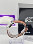 Movado Women's Bold Silver Dial Leather Band Quartz Watch - 3600379 ($595 MSRP) With Original Box! This watch is a Shelf Pull from one of the Major Department Stores. Watch has micro scratches on the watch case/band, visible under direct light. NOTE: There are small scratches in the crystal . Experience the perfect blend of classic sophistication and modern elegance with the Movado Bold Women's Silver Dial Quartz Leather Band Watch. This exquisite timepiece features a polished stainless steel case that complements its rich cognac calfskin leather strap, offering a harmonious balance of luxury and comfort. The fixed stainless steel bezel enhances the watch’s refined aesthetic, while the striking silver dial adds a touch of contemporary style. The dial is distinguished by its rose gold-tone hands, which contrast beautifully with the grey background, and is highlighted by the signature Movado dot at the 12 o'clock position. The minimalist design is both elegant and functional, with no additional markers to distract from its clean lines. Powered by precise quartz movement and protected by a scratch-resistant K1 mineral crystal, this watch combines accuracy with durability. With a case size of 36 mm in diameter and a thickness of 10 mm, this timepiece provides a comfortable yet noticeable presence on the wrist. The 18 mm band width and tang clasp ensure a secure and adjustable fit, while the water resistance up to 30 meters (100 feet) adds practicality for daily wear. Whether for a special occasion or everyday elegance, the Movado Bold Women’s Silver Dial Quartz Leather Band Watch is a timeless choice that effortlessly enhances any wardrobe. Features Stainless steel case with a cognac (calfskin) leather strap. Fixed stainless steel bezel. Silver dial with rose gold-tone hands. No markers. The Movado dot appears at the 12 o'clock position. Dial Type: Analog. Quartz movement. Scratch resistant k1 mineral crystal. Pull / push crown. Solid case back. Round case shape. Case size: 36 mm. Case thickness: 10 mm. Band width: 18 mm. Tang clasp. Water resistant at 30 meters / 100 feet. Functions: hour, minute. Fast and Free Shipping You're already purchasing the item. Why pay additional for shipping, especially slow shipping? We get your order shipped out within 1-business day and delivered to your doorstep as quickly as possible. Competitive Pricing With our dynamic pricing model, our prices are always competitive. Our prices are some of the lowest that you will find on the internet. Rest assured that you're getting a good deal when purchasing with us. 30-day Money Back Guarantee We are committed to making sure that you leave this transaction satisfied. If you're unhappy with the product for any reason, you may return it back for your money-back or a replacement within 30 days. No questions asked!