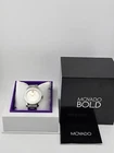 Movado Women's Bold Stainless Steel Silver Dial Swiss Watch 3600084 ($650 MSRP) With Original Box! This watch is a Shelf Pull from one of the Major Department Stores. Watch has scratches on the watch case/band. Note: Watch has a long scratch on the crystal. Introducing the Movado Women's Bold Stainless Steel Silver Dial Swiss Watch, a stunning timepiece that combines modern design with Swiss precision. This watch features a sleek stainless steel bracelet and a striking silver dial, exuding elegance and sophistication. The minimalist design is complemented by the iconic Movado Museum dot at 12 o'clock, symbolizing the sun at high noon. Crafted with precision and attention to detail, the Movado Women's Bold watch is a statement piece that effortlessly elevates any outfit. The Swiss quartz movement ensures accurate timekeeping, while the durable stainless steel construction offers both style and durability. Whether worn for a special occasion or as an everyday accessory, this watch is a versatile and timeless addition to any wardrobe. Make a bold statement with the Movado Women's Bold Stainless Steel Silver Dial Swiss Watch, a timepiece that reflects your impeccable style and sophistication. Elevate your look with this elegant watch that combines modern design with Swiss craftsmanship, showcasing your appreciation for luxury and precision. Features Polished stainless steel case with a stainless steel bracelet. Fixed stainless steel bezel. Silver dial with rose gold-tone hands. No markers. Rose gold-tone Movado dot appears at the 12 o'clock position. Dial Type: Analog. Quartz movement. Scratch resistant mineral crystal. Solid case back. Case diameter: 36 mm. Case thickness: 10 mm. Round case shape. Push button deployment clasp. Functions: hours, minutes. Dress watch style. Watch label: Swiss Made. Fast and Free Shipping You're already purchasing the item. Why pay additional for shipping, especially slow shipping? We get your order shipped out within 1-business day and delivered to your doorstep as quickly as possible. Competitive Pricing With our dynamic pricing model, our prices are always competitive. Our prices are some of the lowest that you will find on the internet. Rest assured that you're getting a good deal when purchasing with us. 30-day Money Back Guarantee We are committed to making sure that you leave this transaction satisfied. If you're unhappy with the product for any reason, you may return it back for your money-back or a replacement within 30 days. No questions asked!