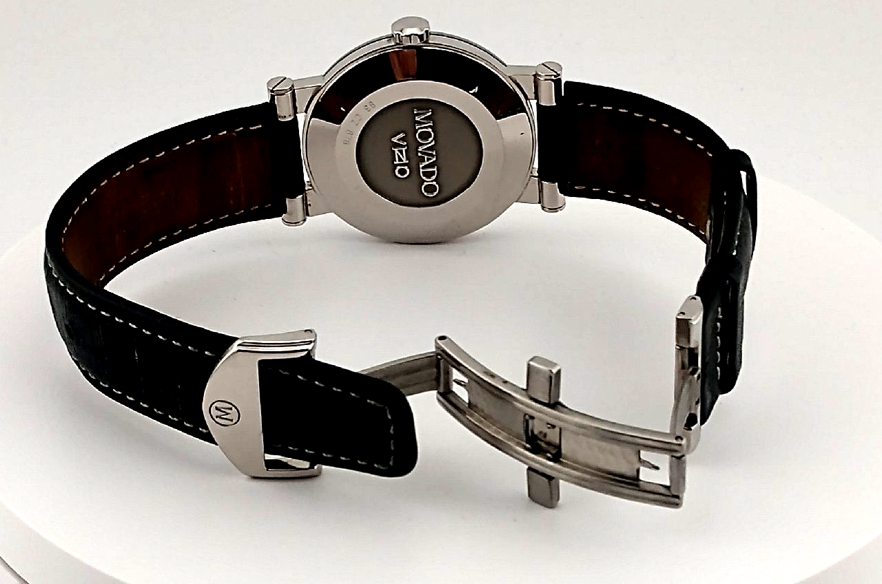 grandpa don’s mostly movados Make/Model/Serial Number: Movado Men's Vizio Stainless Steel Swiss Quartz/Model #83.C2.878/Serial #33193XX Description: T his elegant and unique wristwatch is a must-have for any fashion-conscious individual. Its stainless steel case and black leather band with stainless steel double locking fold-over clasp provides durability while the white dial adds a touch of sophistication. The watch features an analog display and comes with a sweep second hand and date function at 3 o’clock, making it not only stylish but also practical. Roman numeral hour markers at VI and XII with silver dot indices marking the remaining hours add a touch of elegance to this unique and perfect design. The watch is suitable for casual daytime to elegant evening wear, making it a versatile accessory to add to your collection. The brand, Movado, is well-known for their quality products, ensuring that this watch will last you for years to come. Fits up to size 8” wrist – band is adjustable to accommodate a smaller wrist. The perfect gift for yourself or that special someone – don’t forget Christmas is just around the corner… In addition to this elegant watch this package includes Two (inner and outer) Authentic Movado Presentation/Storage Boxes. Case & Dial • Case Size: 35mm w/o crown, 38mm w/crown • Case Thickness: 7mm • Case Material: Stainless Steel • Case Color: Silver • Bezel Material: Stainless Steel • Bezel Color: Silver Polished • Crown Type: Push/Pull • Crystal Type: Sapphire • Dial Material: Metal Movement • Function Type: Swiss Quartz Water Resistance • Water Resistance: Not Guaranteed Band • Material: Black Leather • Tone: W/Sliver Fold-Over Double Locking Clasp • Size: 21mm GrandPa Don's Rating: 4+ This timepiece is in excellent condition, both mechanical sound and aesthetically pleasing, I have marked the down because of the used band. Although functional it does show wear on the inside other wishe, this beauty could pass as a new watch. Battery replaced in June, 2025 which should provide years of trouble free service for the new owner. Item Material Details: Metal Stainless Steel The watch you receive is refurbished to the best possible condition and assigned a present condition number from 3-5 (see below). The battery in your quartz watch is guaranteed to have been replaced within the past 6 months. All of our watches are shipped in a display/storage box that in most cases, corresponds to the brand. Notes: è Unfortunately, due to concern with the high levels of fraud, orders through Ebay that have non-matching shipping/billing address will be cancelled. è Pictures detail the watch and box you will receive. At no additional charge, you will receive either a new or historically accurate Movado box/presentation case. è Where possible, I have added links to increase the size of the band to fit a larger wrist. è No other accessories are included other than what is shown in photos. Please closely access photos for condition and message us with ANY QUESTIONS prior to purchase. Shipping: è SHIPPING & INSURANCE ARE PAID FOR BY THE BUYER è BILLING AND SHIPPING ADDRESS MUST MATCH OR WE CAN NOT SHIP OUT ITEMS è All sales over $300 are insured and require a signature upon delivery è Ships within the continental US ONLY, through USPS Priority Mail, USPS Ground Advantage OR UPS Ground. è Under most circumstances, your item will be shipped within one (1) business day. USPS PRIORITY MAIL should be delivered within 1-3 business days, Ground Advantage and UPS within 5 business days Returns: è I WILL ACCEPT RETURNS UNDER CERTAIN CONDITIONS: Five (5) day return IF DEFECTIVE and returned in same condition as received. Unfortunately, I do not accept a return on items that do not meet your needs – please make sure the watch or other item(s) you purchase meet your needs and expectations before you make the purchase. Rating System: Keep in mind, light scratching is indicative to stainless steel – and can even be seen on a new watch when using a jeweler’s loop. If you are looking for it, you will see it. Using a jeweler’s loop and using the naked eye give two completely different visualizations. Refurbished watches are not perfect – but should look exceptionally pleasing to the naked eye – thus the rating system that I use: è A Rating of Three (3): some scratching will be visible to the naked eye. For example, deep scratches on the caseback are usually caused by an individual attempting to change a battery without the proper tools or experience. Although lightened through reconditioning, excising these completely could compromise the integrity of the case. è A Rating of Four (4): light scratching on the band and/or caseback may be visible to the new owner but most likely not to others. A condition just slightly below a four plus. è A Rating of Four-Plus (4+): minimal light scratching, if any, on the band or caseback may be present but likely not seen to the naked eye. Watches given this rating have been very lightly used and/or taken very good care by the previous owner. Could easily pass as a new watch. è A Rating of Five (5): The watch is either brand new and never been worn or lightly used but reconditioned with excellent results – any defects and/or scratches have been removed. Please Note: Although any distinction between a new watch and a reconditioned watch with a 5 rating is difficult to discern by the naked eye, we will always indicate if a five is a new or a reconditioned watch. Rest assured, I will never sell you a reconditioned watch as a new, unworn watch. About Us: Grandpa Don has been in business since 2001and has periodically sold refurbished watches on Ebay since that time. I have more than 25 years experience working on Movado watches and still handle the beautification and refurbishing of the watch you purchase – although I am now a Great GrandPa and do leave the intricate movement work to an expert Movado wat