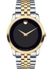 We generally ship within 24-72 business hours after the payment is cleared. Delivery usually takes 9-16 business days after shipment via regular shipping option and 4-8 business days via Expedited shipping. Brand Movado Model number 0606605 Item Shape Round Display Type Analog Clasp Deployment-clasp Case material Stainless steel Case diameter 40 millimeters Case Thickness 8 millimeters Band Material Two-tone-stainless-steel Band Color Two Tone Dial color Black Bezel material Gold tone Bezel Function Stationary Water Resistant 30 Meters