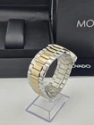 Movado Museum Men’s Black Dial Two Tone Watch Refurbished - 2100016 ($995 MSRP) With Original Box! This watch is a Shelf Pull from one of the Major Department Stores. This watch has been professionally refurbished and is in excellent condition with minimal cosmetic imperfections. The Movado Men's Classic Museum Black Dial Two Tone Watch (model 2100016) showcases a refined blend of modern design and timeless elegance. Crafted with a stainless steel case and a sophisticated two-tone bracelet in silver and yellow gold PVD, this watch is a striking statement piece. The fixed yellow gold PVD bezel frames the iconic black Museum dial, which is accented only by sleek gold-tone dauphine-style hands and the signature Movado dot at 12 o’clock, creating a bold, minimalist aesthetic. Powered by a reliable quartz movement, this watch delivers accurate timekeeping with a clean analog display. The scratch-resistant sapphire crystal protects the dial, while the solid case back and pull/push crown ensure durability and ease of use. With a 39mm round case and a 20mm band width, it offers a balanced fit that’s both stylish and comfortable for daily wear. The butterfly clasp adds a touch of refinement while providing a secure closure. Water-resistant up to 30 meters (100 feet), the Movado 2100016 is suitable for everyday splashes and brief water exposure. Whether paired with business attire or evening wear, this timepiece embodies Movado’s legacy of minimalist sophistication, making it an ideal choice for the modern man who values sleek design and quality craftsmanship. Features Stainless steel case with a two-tone (silver-tone and yellow gold PVD) stainless steel bracelet. Fixed yellow gold PVD bezel. Black dial with yellow gold-tone dauphine-style shape hands. No markers. The Movado dot appears at the 12 o'clock position. Dial Type: Analog. Quartz movement. Scratch resistant sapphire crystal. Pull / push crown. Solid case back. Round case shape. Case size: 39 mm. Band width: 20 mm. Butterfly clasp. Water resistant at 30 meters / 100 feet. Functions: hour, minute. Fast and Free Shipping You're already purchasing the item. Why pay additional for shipping, especially slow shipping? We get your order shipped out within 1-business day and delivered to your doorstep as quickly as possible. Competitive Pricing With our dynamic pricing model, our prices are always competitive. Our prices are some of the lowest that you will find on the internet. Rest assured that you're getting a good deal when purchasing with us. 30-day Money Back Guarantee We are committed to making sure that you leave this transaction satisfied. If you're unhappy with the product for any reason, you may return it back for your money-back or a replacement within 30 days. No questions asked!