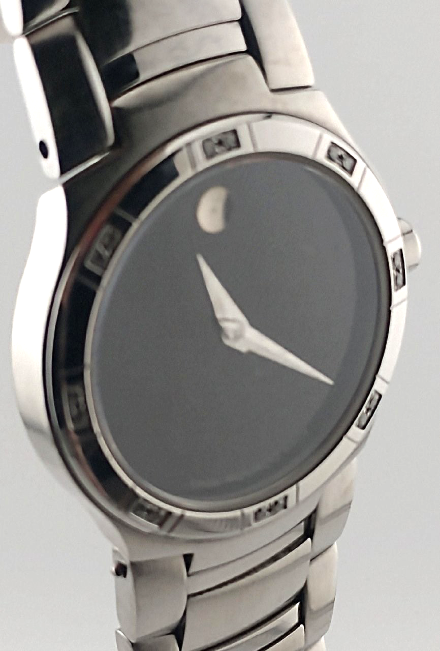 grandpa don’s mostly movados Make/Model/Serial Number: Movado Ladies Sapphire Classic Museum Watch W/Diamond Studded (16) Bezel/Model: #84.E4.1833S/Serial #:74135XX Description: This elegant Movado Ladies Sapphire Classic Museum wristwatch, is an elegant timepiece featuring a sleek stainless steel case and matching stainless steel band. The black dial with diamond bezel adds a touch of glamour to this casual yet stylish watch. With a silver stainless steel case and band, the watch has a sleek and modern look. The black dial adds a touch of sophistication, while the 27mm case size makes it a perfect fit for that special lady. The watch is powered by a Swiss quartz movement and belongs to the Movado Classic Museum collection which features a variety of aspects, including a stainless steel case and band, generally considered to be that chameleon of wristwatches - a style that is just as just as appropriate for casual daily wear as-it-is at that formal dinner party. Whether you're looking for a new watch for yourself or as a gift for that someone special, this Movado Diamond Studded Sapphire is an excellent choice for any fashion-conscious individual. The watch is pre-owned and refurbished with a new battery installed in May 2025 – which should provide years of trouble free service. . As with all of the watches we sell, they have been refurbished and authenticity is guaranteed – this watch works great and shows well. If you are looking for a moderately priced Movado watch then look no further. This package includes both, a beautiful new presentation box and outer protective box. Features: - Swiss Made - Black Dial - 16 Diamonds Set on Bezel - Battery Operated Swiss Quartz Movement - Guaranteed Authentic - Polished with Brushed Steel Case & Bracelet - Scratch Resistant Sapphire Crystal - Presentation and Storage Boxes Included - 30 Meters / 100 Feet Water-Resistant (Not Guaranteed) - 27mm Case with 5.75" Adjustable 14mm Bracelet - Butterfly Deployment Buckle GrandPa Don's Rating: 4 This watch is in excellent condition. Mechanical sound and Aesthetically Pleasing – however, under the hood there are a few noticeable light scratches on the stainless steel band that need to be accounted for, therefore I have marked down the rating on this watch. However, this watch is suitable as a gift. Item Material Details: Metal Stainless Steel The watch you receive is refurbished to the best possible condition and assigned a present condition number from 3-5 (see below). The battery in your quartz watch is guaranteed to have been replaced within the past 6 months. All of our watches are shipped in a display/storage box that in most cases, corresponds to the brand. Notes: è Unfortunately, due to concern with the high levels of fraud, orders through Ebay that have non-matching shipping/billing address will be cancelled. è Pictures detail the watch and box you will receive. At no additional charge, you will receive either a new or historically accurate Movado box/presentation case. è Where possible, I have added links to increase the size of the band to fit a larger wrist. è No other accessories are included other than what is shown in photos. Please closely access photos for condition and message us with ANY QUESTIONS prior to purchase. Shipping: è SHIPPING & INSURANCE ARE PAID FOR BY THE BUYER è BILLING AND SHIPPING ADDRESS MUST MATCH OR WE CAN NOT SHIP OUT ITEMS è All sales over $300 are insured and require a signature upon delivery è Ships within the continental US ONLY, through USPS Priority Mail, USPS Ground Advantage OR UPS Ground. è Under most circumstances, your item will be shipped within one (1) business day. USPS PRIORITY MAIL should be delivered within 1-3 business days, Ground Advantage and UPS within 5 business days Returns: è I WILL ACCEPT RETURNS UNDER CERTAIN CONDITIONS: Five (5) day return IF DEFECTIVE and returned in same condition as received. Unfortunately, I do not accept a return on items that do not meet your needs – please make sure the watch or other item(s) you purchase meet your needs and expectations before you make the purchase. Rating System: Keep in mind, light scratching is indicative to stainless steel – and can even be seen on a new watch when using a jeweler’s loop. If you are looking for it, you will see it. Using a jeweler’s loop and using the naked eye give two completely different visualizations. Refurbished watches are not perfect – but should look exceptionally pleasing to the naked eye – thus the rating system that I use: è A Rating of Three (3): some scratching will be visible to the naked eye. For example, deep scratches on the caseback are usually caused by an individual attempting to change a battery without the proper tools or experience. Although lightened through reconditioning, excising these completely could compromise the integrity of the case. è A Rating of Four (4): light scratching on the band and/or caseback may be visible to the new owner but most likely not to others. A condition just slightly below a four plus. è A Rating of Four-Plus (4+): minimal light scratching, if any, on the band or caseback may be present but likely not seen to the naked eye. Watches given this rating have been very lightly used and/or taken very good care by the previous owner. Could easily pass as a new watch. è A Rating of Five (5): The watch is either brand new and never been worn or lightly used but reconditioned with excellent results – any defects and/or scratches have been removed. Please Note: Although any distinction between a new watch and a reconditioned watch with a 5 rating is difficult to discern by the naked eye, we will always indicate if a five is a new or a reconditioned watch. Rest assured, I will never sell you a reconditioned watch as a new, unworn watch. About Us: Grandpa Don has been in business since 2001and has periodically sold refurbished watches on Ebay since that time. I have more than 25 years experience working