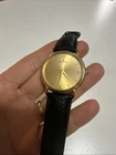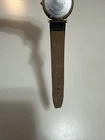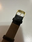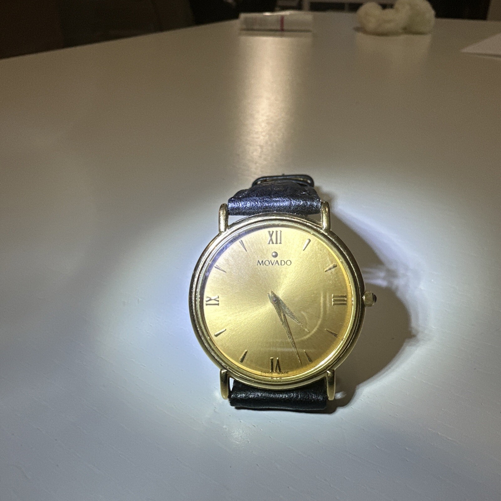 Movado 87-E4-0885 Gold Wristwatch Swiss Sapphire Leather Band Watch. Condition is Pre-owned. Shipped with USPS Ground Advantage.