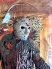 The product is a vintage Movie Maniacs action figure featuring the very rare bloody version of Jason Voorhees from Friday the 13th. It includes a bloody machete, harpoon, axe, figure stand, and stands at 7 inches tall. Created by McFarlane Toys in 1998, this 1:12 scale collector's edition showcases Todd McFarlane's artistry. Made of plastic, it is a multi-coloured variant with an original design from the Movie Maniacs franchise.