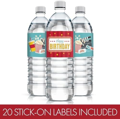 Includes 20 Wrappers – Set includes 20 vibrant labels to dress up water bottles, adding a fun and festive touch to your party tables and refreshment stations. Waterproof Material – Designed to withstand condensation and chilled drinks, these labels stay looking sharp from start to finish. Fun Movie Night Theme – Bring the big screen to your celebration with water bottle labels featuring popcorn, tickets, and film reel designs—great for any movie lover’s party. Easy to Use: Simply peel and stick the labels onto the water bottles for instant movie-themed decor. Great for All Ages – Whether it’s a kids’ birthday, teen hangout, or adult movie marathon, these labels add charm to your party decor.