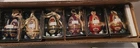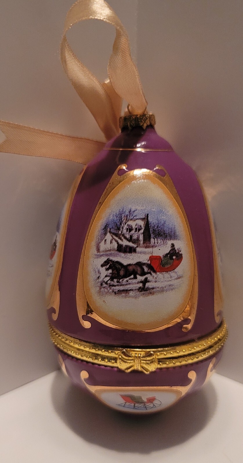 Set of 6 Musical Egg Ornaments. These are still in Box they have been used the Music Does Not play in most if not all anymore . Probably needs battery . Im not sure what size or if they even have battery.No breaks chips or cracks.