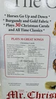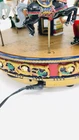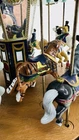 This product is a retired Mr Christmas "The Carousel" that plays 30 songs, perfect for the Christmas season. Made of mixed materials and featuring a multicolor design, this collectible item was manufactured in 2005 in China. The carousel is a festive addition to any holiday decor. Horses go up and down , lights in ceiling work , burgundy and gold fabric topper . Great condition with original outer sleeve packaging. Includes ac adapter See video Woburn