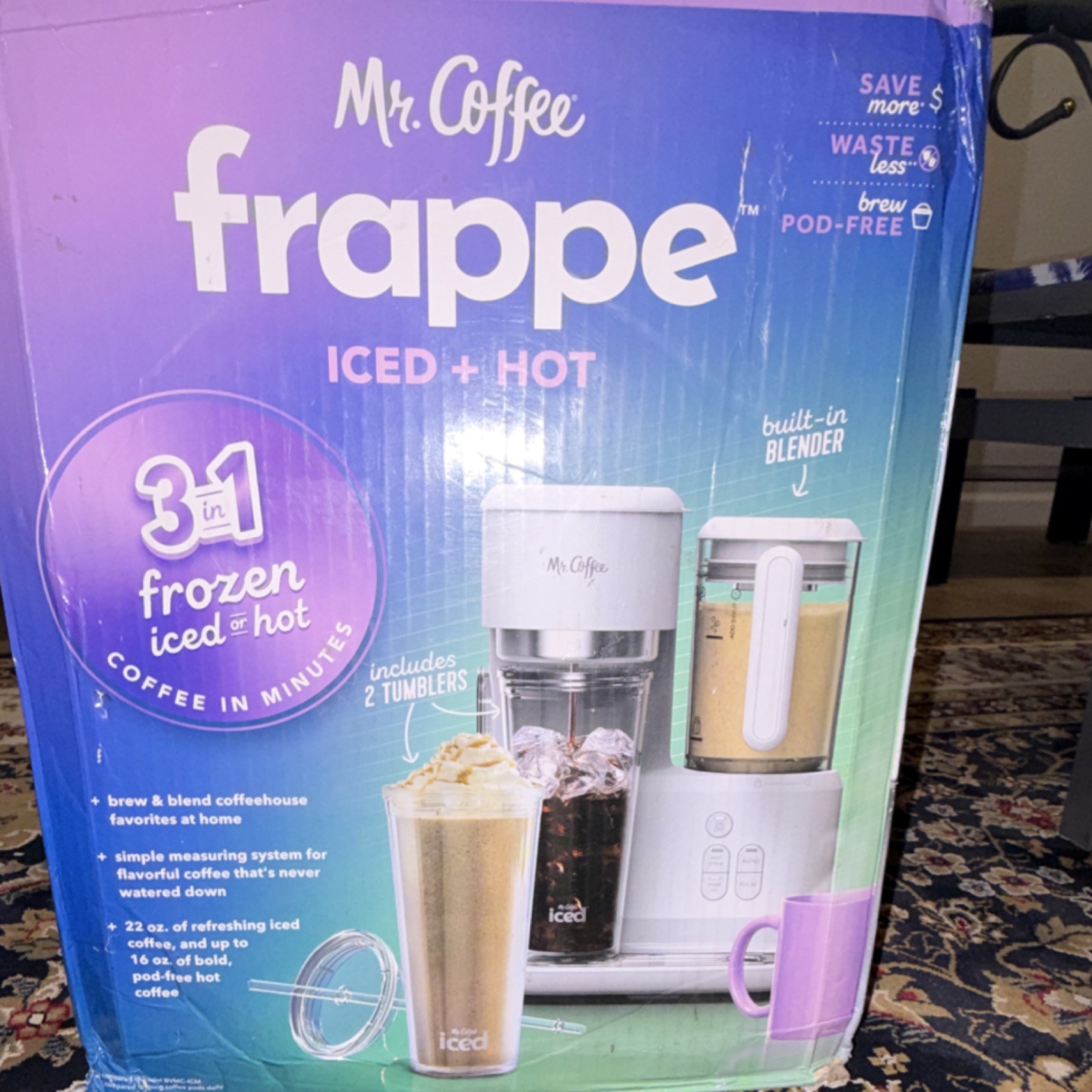 Mr. Coffee Frappe Iced + Hot 3-in-1 Coffee Maker White Built-in Blender