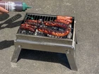 Enjoy easy grilling in the outdoors with a Mr. Outdoors Cookout Stainless Steel BBQ Grill. Great for the campsite and portable for travel! Light compact grill unfolds to 10.5” height with 10” x 14” grill surface. Perfect for 8lb bag of . Packs and stores easily. Fabric carry bag included. Stainless steel, portable grill 10" x 14" grill surface Holds an 8lb. Bag of Light pack, compact breakdown - great for quick trips Fabric carry-bag included