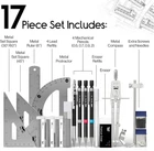 Mr. Pen- Professional Geometry Set, 17 pcs, Silver Geometry Kit for Artists, Metal Rulers and Compasses, Mechanical Pencil Set, Drafting Tools & Drafting kits, Metal Compass and Protractor Set Product Details Manufacturer: Mr. Pen Brand: Mr. Pen Item Weight: 1.3 pounds Package Dimensions: 13.74 x 9.06 x 0.87 inches Item model number: EEEG007M311 Material Type: Metal Point Type: Broad Line Size: 0_5mm, 0_7mm, 0_9mm, 2mm Manufacturer Part Number: EEEG007M311 Brand: Mr. Pen Writing Instrument Form: Mechanical Graphite Pencil Age Range (Description): Kid, Adult Material: Metal Point Type: Broad Mr. Pen mechanical pencil set includes 4 versatile sizes (0.5, 0.7, 0.9, and 2mm) to cater to a wide range of drawing and writing needs, providing precision and versatility for technical drawings, sketches, and general writing. Crafted with a robust construction, these mechanical pencils offer a balanced weight that ensures comfortable handling and reduced fatigue during long drawing sessions or extensive writing work. This set is not just about pencils; it also includes a metal compass with an extension leg, extra screws and needles, eraser refills, and four tubes of lead refills, making it a complete package for professionals and students alike. For detailed measurement and drawing, the set comes equipped with a metal protractor, a 6-inch metal ruler, and two set squares (45° and 30°/60°), enhancing the functionality for all levels of drafting and design projects. Everything is neatly organized in a sturdy case, ensuring that all tools are secure and easily transportable, making it an ideal choice for architects, engineers, artists, and anyone who desires a reliable and comprehensive drawing toolkit. Mr. Pen mechanical pencil set includes 4 versatile sizes (0.5, 0.7, 0.9, and 2mm) to cater to a wide range of drawing and writing needs, providing precision and versatility for technical drawings, sketches, and general writing.Crafted with a robust construction, these mechanical pencils offer a balanced weight that ensures comfortable handling and reduced fatigue during long drawing sessions or extensive writing set is not just about pencils; it also includes a metal compass with an extension leg, extra screws and needles, eraser refills, and four tubes of lead refills, making it a complete package for professionals and students detailed measurement and drawing, the set comes equipped with a metal protractor, a 6-inch metal ruler, and two set squares (45° and 30°/60°), enhancing the functionality for all levels of drafting and design projects.Everything is neatly organized in a sturdy case, ensuring that all tools are secure and easily transportable, making it an ideal choice for architects, engineers, artists, and anyone who desires a reliable and comprehensive drawing toolkit.
