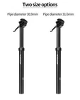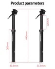 Material: aluminum alloy Travel: 100mm/125mm Length: 445mm Size: 30.9mm/31.6mm Weight: 30.9mm seat post is about 678g/31.6mm seat post is about 706g Seat post features: 1. The height of the seatpost can be manually adjusted to lock it at any position within the effective travel range. 2. The seat post is made of aluminum alloy, and the surface adopts anodizing process, which is high in strength, corrosion-resistant and durable. 3. The seat cushion angle can be adjusted through the upper and lower splints to maintain a more comfortable riding experience.