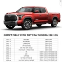 #5/30/40 g216#12 The product is a mud flaps kit designed for the 2024 Toyota Tundra, also compatible with the 2022 and 2023 models. These mud flaps serve as accessories to protect the vehicle from mud splash and other debris while driving. The kit is specifically made for the Toyota Tundra, ensuring a perfect fit and functionality. Perfect for keeping the vehicle clean and preventing damage from road debris.