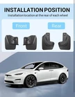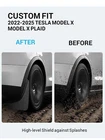 The product is a set of four mud flaps designed specifically for the Tesla Model X 2023 and 2022 models. These mud flaps are easy to install without the need for drilling, providing protection for the vehicle's exterior from mud, rocks, and other debris. They are custom-made to fit the Tesla Model X, offering a practical solution to keep the vehicle clean and free from damage. Perfect for Tesla owners looking to maintain the aesthetics and condition of their vehicle while driving in various road conditions.