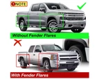 YHTAUTO Mud Flaps Splash Guards Compatible with Chevrolet Silverado Tahoe Suburban 2001-2014, Avalanche 2002-2006, Without Fender Flares, Mudguards Mudflaps Accessories for Cars, Front & Rear 4Pcs About this item Important Considerations: ①It fits the model with single rear wheels (SRW); ②Fit the model without fender flares. We offer online after-sales service and a one-year warranty for our mudguards to ensure worry-free shopping for our customers; ③Front LH RH & Rear LH RH; Reference Number: 19213393, 19213391 Tailored Perfect Vehicle Fit: Replacement for Chevrolet Silverado Models 2001-2014, Tahoe 2001-2014, Avalanche Models 2002-2013, Suburban Models 2001-2014. Mud flaps guards are specifically designed to fit seamlessly on a certain car model What You Will Get: 4pcs mudflaps behind front and rear wheel, and come with mudguards mud flaps accessories (with screws and gaskets). The mud flaps for cars' contoured design complements vehicle lines and its heavy-duty black plastic construction resists cracking
