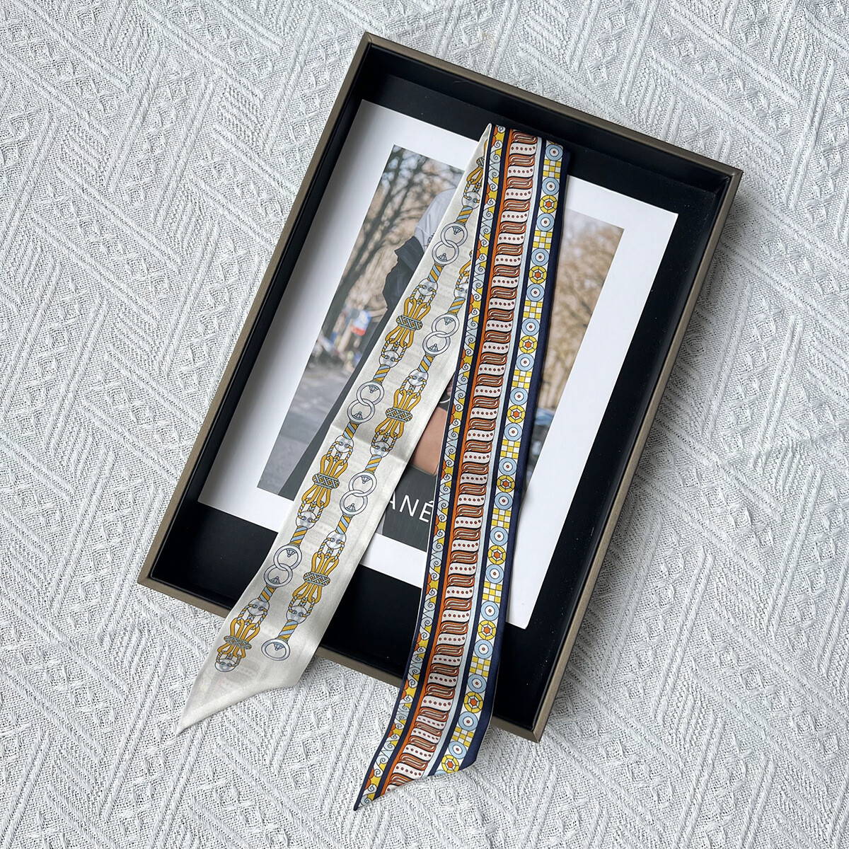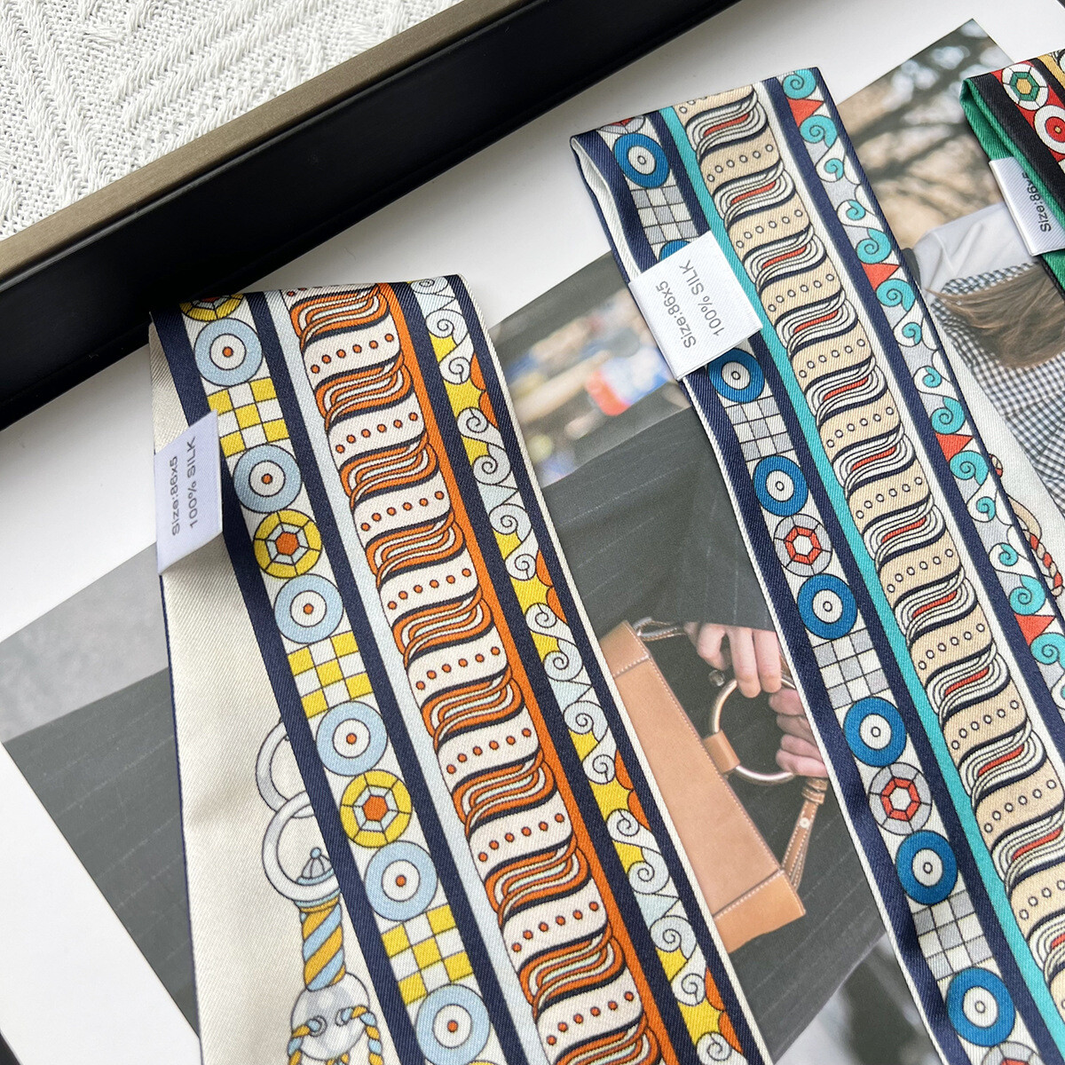 $ 18.13Sallys Twill Silk Scarf Ribbon Holiday Print Slim Headband Bag Neck Tie 85*5cm