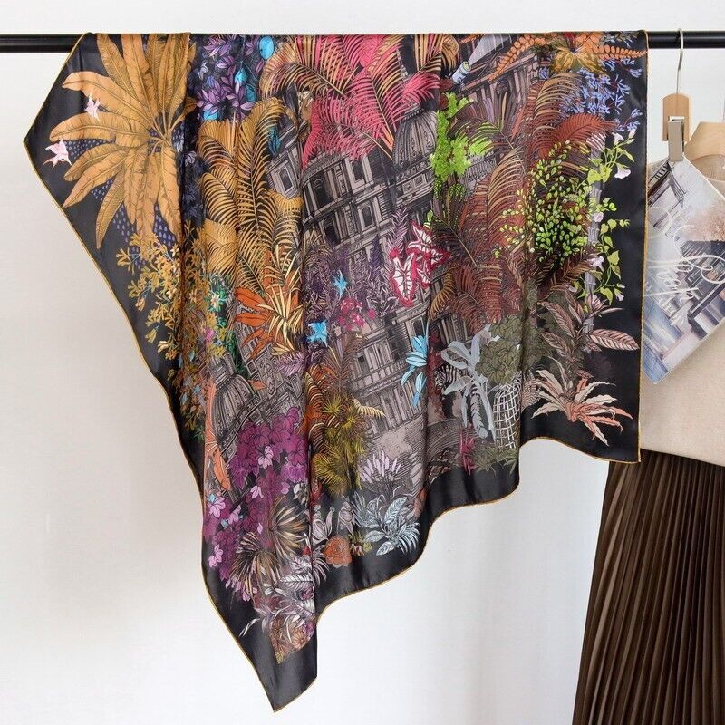 $ 33.2Sallys 16 Momme Twill Silk Wrap Scarf Stole Flowers Print Square Shawl 53"
