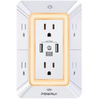 【Multi-function USB Wall Outlet】: 3 USB fast charging ports(1 USB C Port), 3-sided Power Strip, with 6 Adapter Spaced Outlets, and LED night light around the edges. Taking the place of a standard socket, but instead offering you many more plugs. Can be used in any room or public areas indoor. Save space with unique 3D design.NOTE: The UCB-C port doesn't support any other devices which need 14~22V charging voltage. 【Wide Space Outlets】: 6 AC outlets built-in 1680 Joules surge protector with 2.1 inches long space in between, larger than standard 1.5-inch socket. Larger spacing makes it easier to use for all kinds of equipment. 3 Smart USB ports (Total 3.4A) can charge your smart device quickly.Ideal room/home/bedroom decor 【Smart Night Light】- With Dusk-To-Dawn Sensor, automatically turns on only when ambient lighting becomes insufficient. With touch sensor, three levels of adjustable brightness let you choose the right amount of light for your own needs. You could also choose to turn on/off the nightlight manually.The night light is soft, warm and comfortable, great for bedroom, bathroom, nursery, hallway, kitchen and more 【Reliable Surge Protector Circuit】: POWRUI 3 level complementary Surge Protector Circuit which composed of TVS, MOV (metal oxide varistor), GDT (gas discharge tube), with minimum 1680J energy absorbing capacity, could protect your devices much more quickly and reliably than other brand's 1 level MOV(metal oxide varistor) Surge Protection Circuits. 【POWRUI After Sale Service】: ETL Certified, Our friendly and reliable customer service will respond to you within 24 hours. You can purchase with confidence, with our 30-day return and 12-month replacement .
