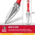 TIPS & TRICKS - Water the seedlings in their original pots or containers before transplanting. This will ensure that the root ball is moist, making it easier to remove the seedlings without damaging their roots. - Use the depth gauge on your Multi-Use Transplanter to ensure that you plant the seedlings or bulbs at the correct depth in the new location; this promotes proper root development and stability. - When using the transplanter, handle the seedlings and their root balls with care to minimize root disturbance. Gently remove the seedlings from their pots and place them in the planting holes without damaging their roots. Avoid squeezing or compacting the roots during the transplanting process. - After transplanting, water your seedlings thoroughly to help settle the soil around their roots and eliminate air pockets. Applying a layer of mulch around the transplanted seedlings can help retain moisture, regulate temperature, and reduce weed competition, further promoting their growth and survival. - Use the pointed tip on the Multi-Use Transplanter for nosing around the circumference of the weed, and then the serrated edges on the blade to cut through any roots. DIG, CULTIVATE, PLANT & WEED >> Effortlessly create perfect planting holes and furrows. Designed with Serrated edges for cutting through roots, removing weeds, and loosen compacted soil as needed. Handy depth gauge so you can transplant with precision. PROFESSIONAL GRADE >> One of the world’s top selling transplanting tools for a reason! The design is tried and true - the performance is unmatched! DURABILITY AT ITS BEST >> Unlike the many knockoffs out there, premium digging and planting tools are manufactured from the highest quality materials and built for decades of reliable use. SATISFACTION GUARANTEED >> Designed and packaged in the USA. Comes with the legendary “no hassle”LIFETIME GUARANTEE against defects in materials and workmanship. REAL >> If you have any questions, suggestions, or concerns, our friendly US-based team is here to help. At , we support all of our products with the industry’s best .