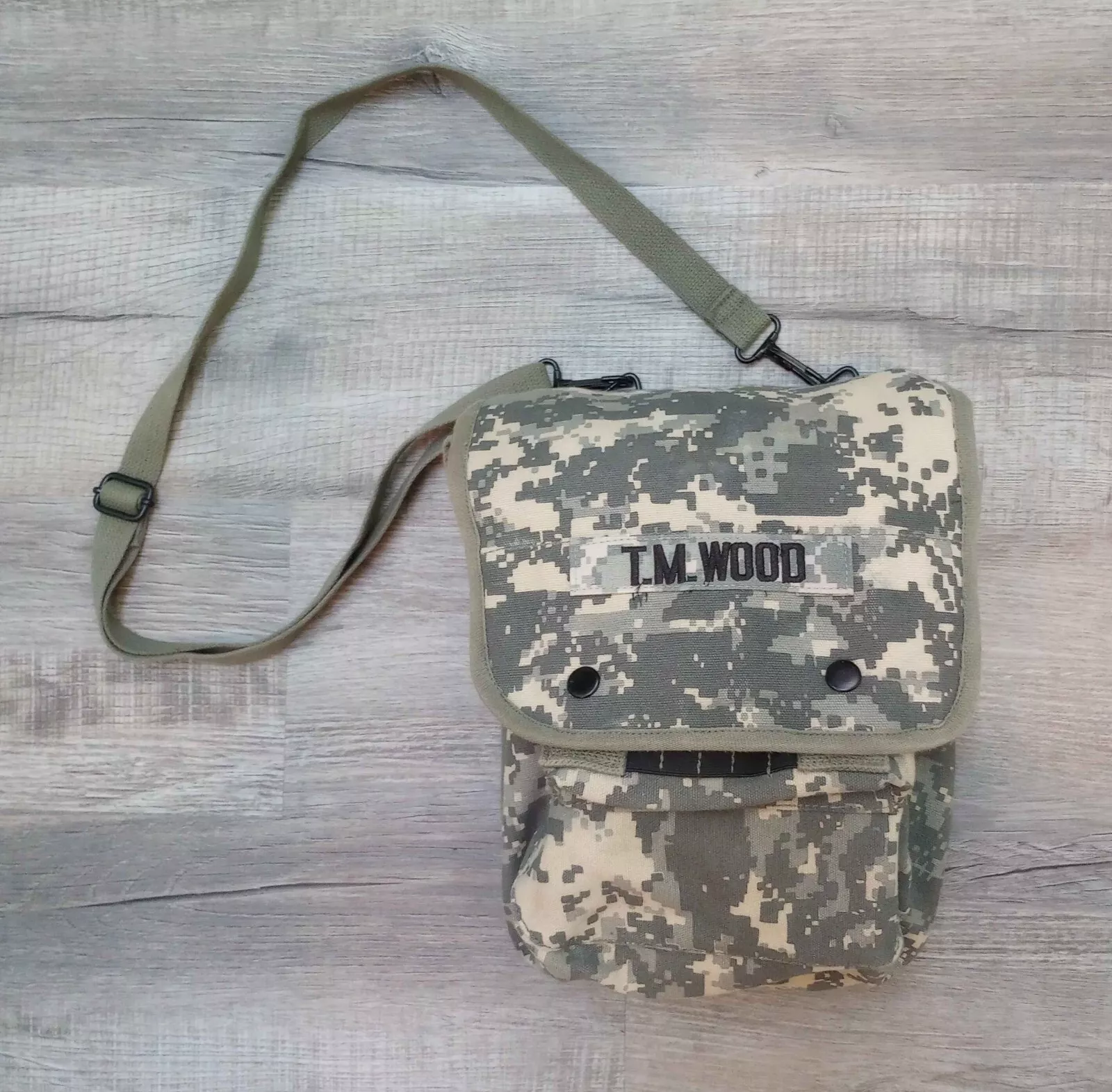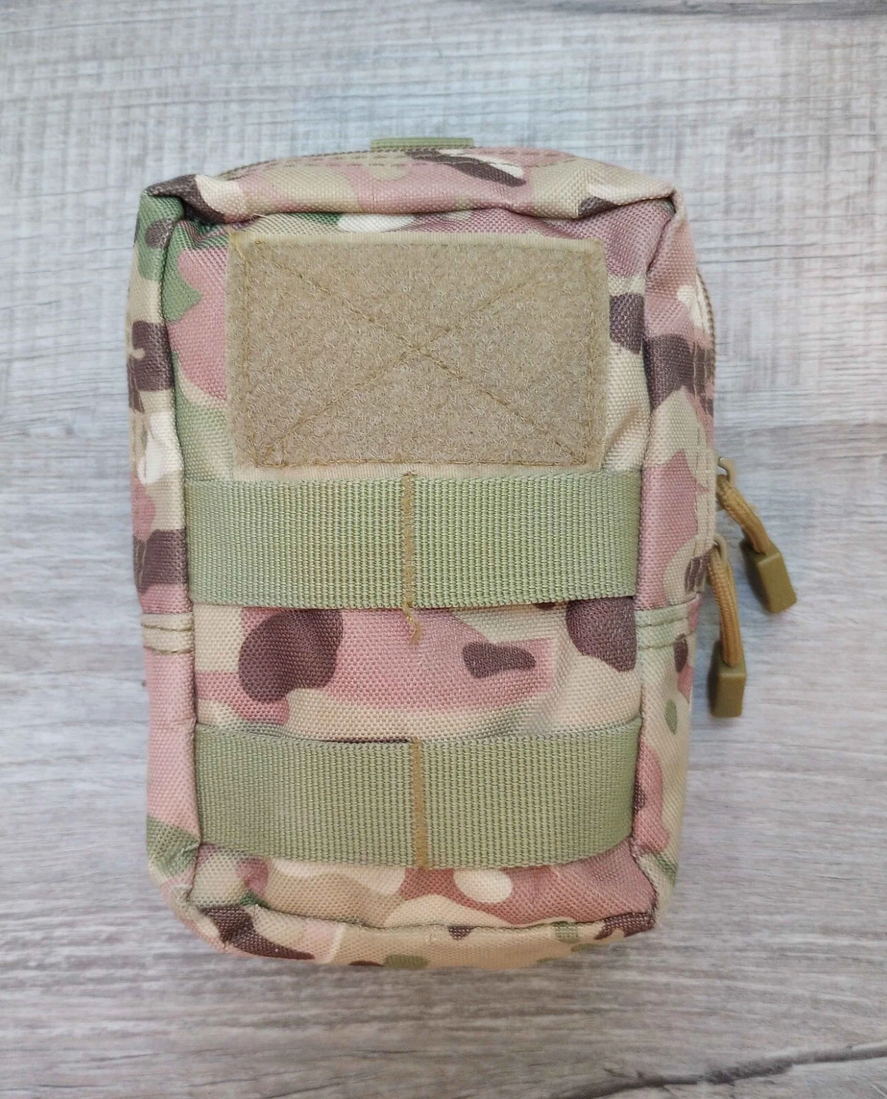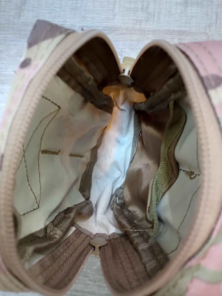 In this lot you will receive 2 pouches. 1: Multicam IFAK General Purpose Utility Tactical MOLLE Pouch Approximate size: 6" x 7" Good condition. No notable damage or wear. Made of nylon Cordura, unknown 'Denier'. Unknown manufacturer, China, 2020's. 2: UCP Messenger E-Tool Shovel Shoulder Bag Tactical Utility Pouch Documents Case Approximate size: 12" x 10" Good condition. No notable damage or wear. Slight staining inside. Tagged to a 'T.M Wood', as can be seen by the name tape. Made of cotton canvas. Unknown manufacturer, India, 2010's.