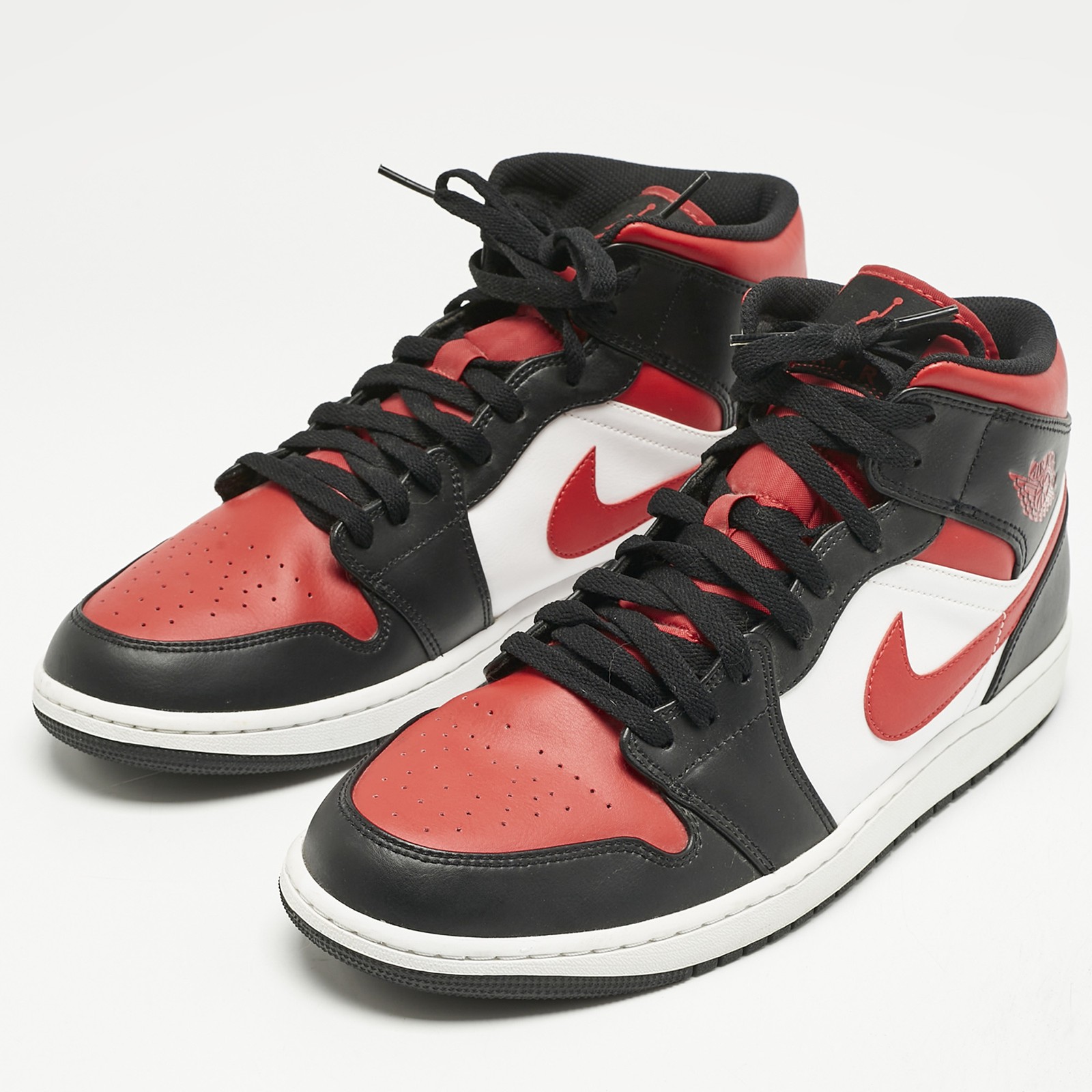 A court classic reimagined, these Air Jordan 1 Mid sneakers feature bold red, black, and white leather panels. With signature cushioning and a heritage inspired silhouette, they’re built for comfort and iconic street style.Certified by The Luxury Closet - This item has gone through a detailed authentication process overseen by our experts. We offer a lifetime guarantee of authenticity on all our items. Import duties, taxes and charges are not included in the item price. These charges are the buyers responsibility. Please check with your country’s customs office to determine what these additional cost will be prior to buying. Our eBay Store About Us Contact Us Add to Favorite Sellers Air Jordans Multicolor Leather Jordan 1 Mid Gym Red Black White Sneakers Size 47.5 $125.4 A court classic reimagined, these Air Jordan 1 Mid sneakers feature bold red, black, and white leather panels. With signature cushioning and a heritage inspired silhouette, they’re built for comfort and iconic street style. Product Details Brand Color Multicolor Dimensions Material Leather Size 47.5 Outsole Width Outsole Length Heel Height Includes Certified by The Luxury Closet This item has gone through a detailed authentication process overseen by our experts. We offer a lifetime guarantee of authenticity on all our items. How We Check The in-house team of experts at The Luxury Closet is highly trained to verify the authenticity and the condition of the luxury products. They ensure that only 100% authentic items are put on sale.The evaluation process is unique with its own mix of assessment criteria and differs according to the category. Each item is evaluated based on the following combination of hallmarks, hardware, stitching, symmetry, material, craftsmanship, stamping, codes, hologram stickers, and packaging. Our authenticators also check if the items have been modified or amended (e.g., aftermarket diamonds, replaced batteries, repaired bags, etc.) International Buyers Import duties, taxes and charges are not included in the item price. These charges are the buyers responsibility. Please check with your country’s customs office to determine what these additional cost will be prior to buying.