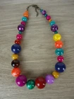 Multicolor Marbled Plastic Bead Costume Jewelry Necklace Strung on Wire. Statement Maximalist Rainbow Colorful Chunky