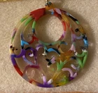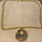 Enhance your beauty with this stunning amulet pendant necklace. The round-shaped pendant is made of multicolor resin and features intricate filigree details that add an artistic touch to your overall look. The necklace is 24 inches long in diameter and features a yellow gold-plated cable chain with a lobster closure that ensures a secure fit. This necklace is a perfect addition to your jewelry collection and can be worn on any occasion. It is handmade with precision in the United States and is not signed or antique. The necklace is ideal for those who love beauty and art and is a great gift for your loved ones.