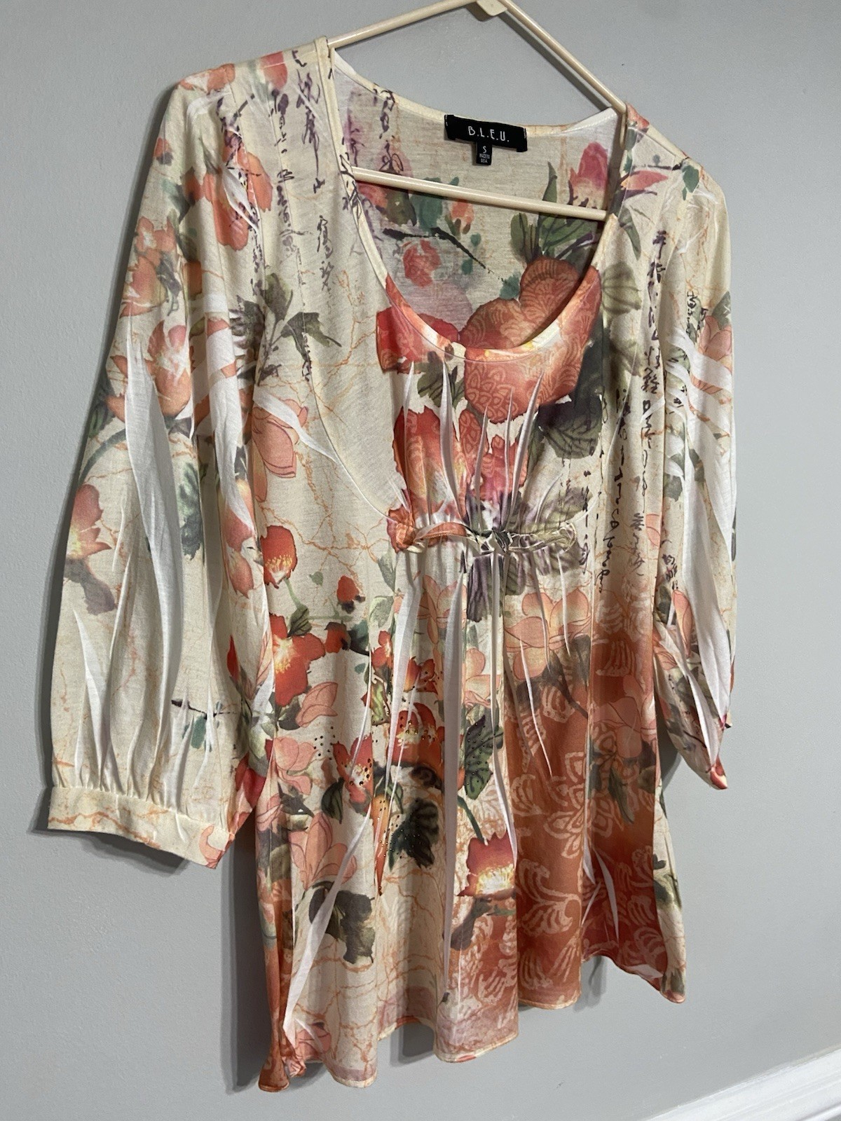 Tiefront Duster Blouse Floral Coral Women's Size XXL 20 Time & Tru