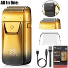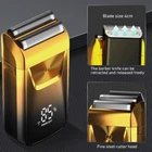 Description ★ Foil shaver: Easily and comfortably trims face, neck and chin. Safe and clean without hurting the skin. ★ Speed: The shaver has 3 speed adjustments. 6 500RPM at most. Give you a quick shave. ★ Pop-up trimmer: Easily and quickly trim longer beards and sideburns for you. Leaves your face refreshed and cleansed. ★ LED: The LED display clearly shows the remaining percentage of the battery. Reminds you to recharge your hair shaver. ★ Battery power: The shaver has a built-in 1 4 00mAh battery, which can be used for up to 1 2 0 minutes after charging for 2 hours. Product Details : Material: ABS Color: Gold /Sliver Power: 5 w Charging Time: 2 Hours Use Time: 120 Minutes Battery: Lithium Battery 14 00mAh Size: Approx. 12x6x3.8cm / 4.7*2.3*1.5inch What You Get : 1 * Men's Shaver 1 * Spare Shaving Head 1 * USB Charging Cable 1 * Clean Brush 1 * Protective C over 1 * Instruction manual