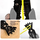 Features: Meet a variety of electrician operation requirements such as cutting the wire, stripping, crimping, winding, wrench.There is no need to change the pliers frequently during use, which improves work efficiency. There has a simple cutter design on the handle, and sharp blades help terminals cut easily and quickly. The ergonomic two-color rubber-coated handle and non-slip design ensure that you can easily hold it. Which enables a firm grip and eliminates hand fatigue. These professional wire stripping pliers tools can meet daily or work different needs. Like home decoration, worker construction, motor repair, repairing wiring problems, DIY crafts, etc. Fine workmanship, made of high-quality chrome vanadium steel, high hardness, long service life, the handle is made of TPR material, non-slip wear-resistant. Specifications: Weight: 230g Material: Chrome vanadium steel+PVC Bending wire angle: 0~100° Stripping range: 0.8-1.3-1.6-2.0-2.6 Crimper: 10-14 16-18 20-22 Package include: 1* Multifunctional Wire Stripping Pliers NOTE Due to manual measurements, please allow slight measurement deviations. Due to the different display and lighting effects, the actual color of the item may be slightly different from the color displayed on the picture.