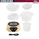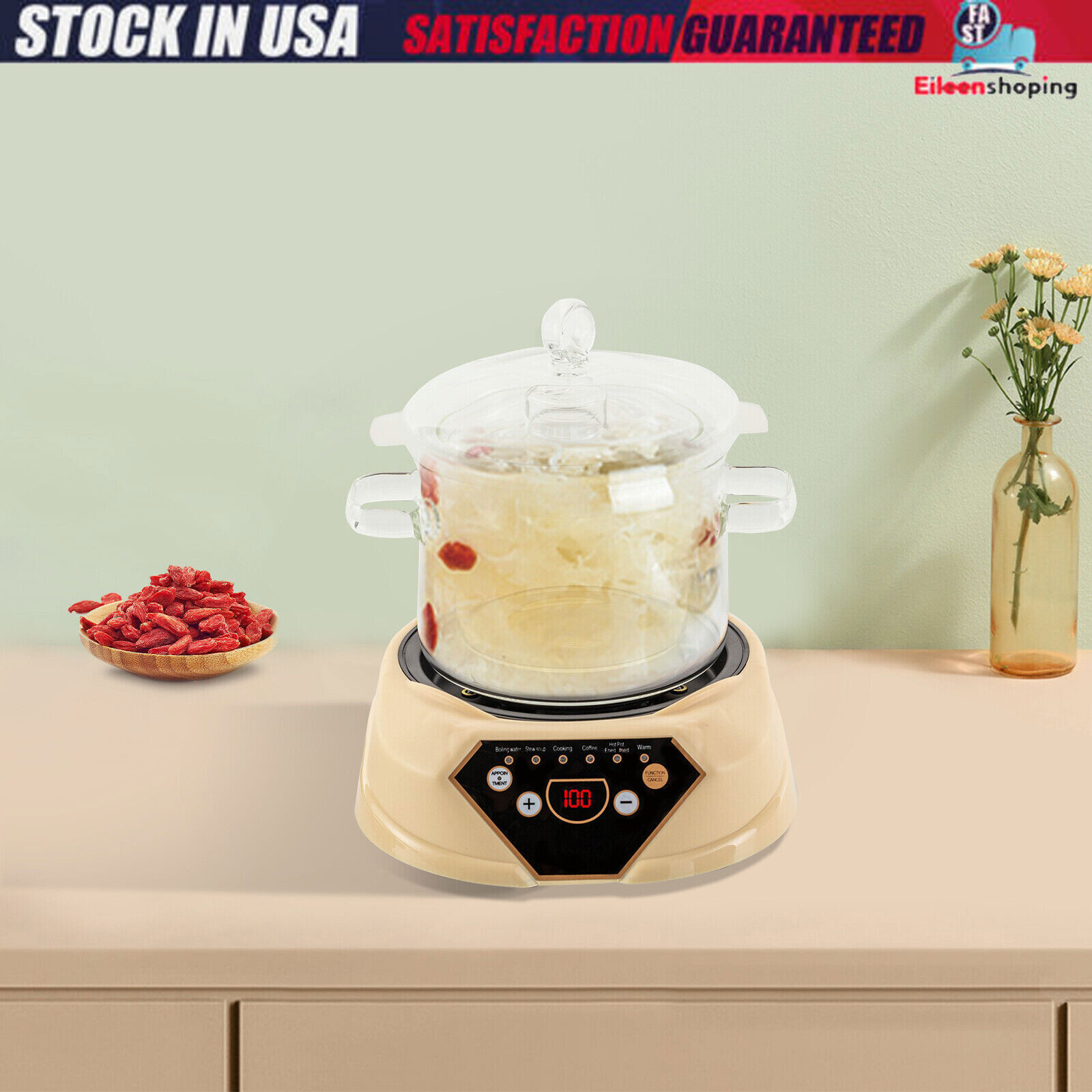Multifunctional Health Pot Auto Electric Stew Pot For Making Tea Porridge Pot Specification Color: Clear, Cream Yellow Style: Modern Material: High Borosilicate Glass Plug Type: US Standard Power: 700W Voltage: 110V Frequency: 60Hz Power Source: Electric Controls Type: Panel Number of Items: 1 Maximum Temperature: About 300℃/572 °F Length of Power Cord: About 85cm/33.46inch Heat Preservation: 8 Hours Reservation Appointment: 30 Minutes to 12 Hours Capacity of Glass Pot: 1.6L/67.63oz Capacity of Glass Stew Pot: 0.8L/33.81oz Product Care Instructions: Hand Wash Gross Weight: 2.2kg/4.85lbs Net Weight: 2kg/4.4lbs Size of Base: 21*24*7.5cm/8.3*9.4*3inch Size of Glass Pot: 15(L)*15(H)cm/5.9*5.9inch Length of Glass Stew Pot: 15.5cm/6.1inch Height of Lid: 7.5cm/3inch Height of Container: 9.3cm/3.66inch Diameter of Base Top: 17cm/6.7inch Diameter of Heating Area: 12cm/4.7inch Package Size: 35.5*24.5*27.5cm/13.98*9.65*10.83inch Package Included 1* Glass Pot 1* Glass Stew Pot 1* Chinese Manual 1* Power Cord 1* Base Key Features High-quality Material : This port is made of high borosilicate glass with strong fracture resistance , high-temperature resistance , high hardness, transmittance, and stability, and does not pose a threat to the human body. The clear design also facilitates you to check the situation in time. High Efficiency: The product with an overall power of 700W adopts a whole circle of the heating plate, which can realize uniform and quick heating, so it can make fragrant and exquisite tea or coffee for you without waiting for a long time. Large Capacity: The port is equipped with a 1.6L/67.63oz glass pot and a 0.8L/33.81oz glass stew pot so that you can make enough coffee, tea, drinks, etc. at one time, which is very convenient. Multiple Functions: This port can be used to make fragrant tea, soup, porridge, stew, dessert, etc. At the same time, it also has the functions of heat preservation(8 hours), and reservation (30 minutes to 12 hours), which fully meet your daily needs, with high-cost performance. Safe to Use: The maximum temperature that the glass can withstand is 300℃/572 °F. At the same time, it has the functions of preventing high temperature, boiling automatic jump, preventing dry burning, etc, and it is designed to be airtight, providing a strong security for your use. Good Heat Dissipation Effect: The bottom is equipped with heat dissipation holes, which can timely reduce the temperature of the product during operation, avoid potential safety hazards, and extend the service life. Simple Operation: The product does not need to be assembled, and when you select a function, the product will have a beep prompt. It can be operated without complicated steps, saving you time. Quiet Environment: The product makes a low noise during operation, which will not affect you. You can fully concentrate on reading, working, etc. Beautiful Appearance: The product is designed with clear and cream-yellow color and smooth lines. It is full of modern and fashion sense and can match the living room and kitchen with various decoration styles. Easy to Clean: It adopts a split design and large diameter design and has a smooth surface and a simple structure, so you only need to wipe the dust or residue with a towel after use. Compact and Lightweight: The product is small, and the net weight is only 2kg/4.4lbs, so you can put it on the coffee table and kitchen at will without occupying much space, and it is also very convenient to move and carry. Ideal Gift: With good performance and fashionable appearance, this product can be used as a gift for parents, friends, and lovers, as well as as a housewarming and holiday gift so that they can also enjoy more exquisite drinks. Enjoy Life: With this product, you can make different foods and drinks for your family, especially for the baby and the elderly. The sense of ritual and happiness in life will follow. Details Solid Base : The base equipped with four anti-slip foot mats can ensure that the product is more stable and not easy to shake during use. Long Power Cord: This port is equipped with a power cord with a length of about 85cm/33.46inch, allowing you to have plenty of length at your disposal. Practical Sieve: The opening of the glass pot is equipped with a removable stainless steel sieve, which can effectively filter the residue and facilitate your cleaning. Glass Lid: The lid with a silica gel sealing ring is heat-insulated and hot-resistant , which can prevent dirt and dust from entering the container and avoid water leakage. The handle on the top is also convenient to open and close. In addition, the lid is also provided with a steam hole, which can maintain the stability of the air pressure in the pot. Double Ear Handles: These two handles are durable, easy to hold, and are convenient for you to move. Independent Power Socket: The socket is easy to clean, waterproof , and has a high safety factor. Display Screen: The operation panel of the product is equipped with a display screen, which can clearly display the time so that you can check the situation and make adjustments. Round Corners: This product adopts an arc design, which can effectively prevent your skin from being scratched compared with the traditional square corners. Application This health port can be widely used at the home, office, RV, party, and tea house for boiling tea, water, coffee, and milk, making soup, porridge, and dessert, stewing, cooking gruel, etc. Notes 1. Please read the operating manual completely before use. And pay particular attention to the safety instructions included. 2. Please note that the health pot shall be tested with clean water before delivery. It is normal that there may be water stains. 3. The surface of this product is very hot during operation, please do not touch it. 4. It is normal that smoke and a scorching smell appear after the machine is heated for the first time, which is the volatilization of new parts of the machine. This situation wil