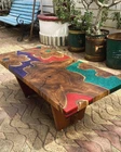 Multy Color Epoxy Resin Table Top With Smooth Corner, Walnut Wood Epoxy Table