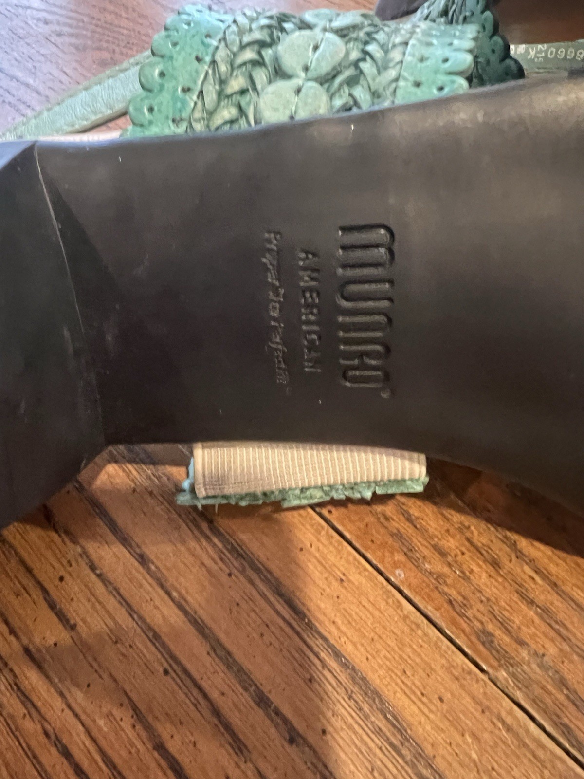The Munro Murocco slingback sandals in turquoise blue woven leather are stylish and comfortable shoes perfect for everyday wear. These size 10N sandals feature a Cuban heel style with a medium height of 1.75", making them versatile for various occasions. Made in the United States with high-quality leather, these slingback sandals are designed by the reputable brand Munro and showcase a beautiful teal color that adds a pop of color to any outfit. Perfect for women looking for a fashionable and practical footwear option.