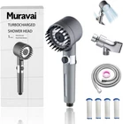About this item High-Pressure Shower Head: Our high pressure Muravai Shower Head has a high pressure pump, it provides a powerful water flow even with low water flow and low water pressure. It will help you to quickly clean your body foam within a few minutes. You will have a truly invigorating shower experience. High Quality ABS Material: The shower head shell is made from premium ABS plastic with a chrome finish, thickened paint process. It make the showerhead has a longer service life. At the same time, it equipped with powerful 150 outlet holes will make the outlet holes smaller and denser and saving water. Powerful Filtration System: This handheld shower head has built-in a pp cotton filter to filter sediment, iron filings, dust and other magazines from the water to maintain your skin and hair, which will provide a clean and refreshing bathing experience for you. Adjustable Shower Head: Our removable filtered shower head design with the most practical 4-water outlet modes, rain mode, blened mode, spray mode, clean mode. You can easily switch any mode according to your preference. It also comes with a one key pause switch that allows you to quickly turn the shower off while saving water. Suitable for the Whole Family: Whether you have been working or studying all day, when you take our handheld showerhead and turn it on, the warm and delicate water will gently massage your skin.You will feel pressure release and body relaxation.The filtered shower head is not only suitable for adults men women kids pets children but also for your dogs to wash a fragrant bath.