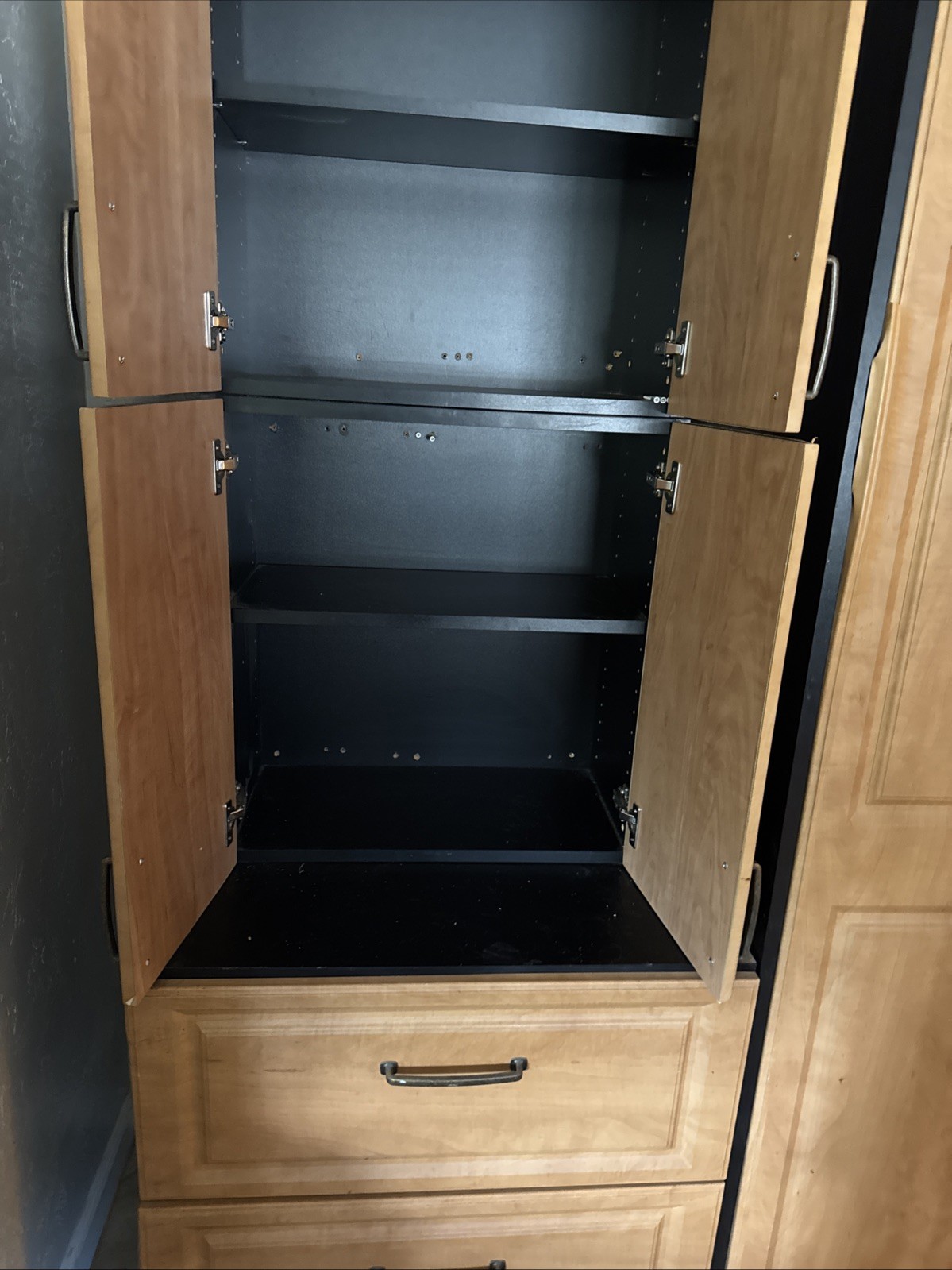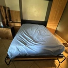 The Murphy Wall Bed Springs Hinges Mechanism Hardware Desk with Four Shelf Drawers is a functional and stylish addition to any bedroom. Made with a wood and metal frame, this Queen-sized wall bed is easy to care for and assemble. It comes in a classic brown color. This piece offers a convenient desk area with four shelf drawers for added storage, making it a versatile and practical choice for adults looking to maximize their space in their bedroom.