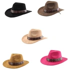 Music Festival Hat Costume Props Hat Adult Winter Autumn Warm Hat Ethnic Fedoras Features: Elevating your styles with our Fedoras hats, use selected Sueded fabric for comfortable and durability. These wide brimmed Fedoras featured a classical yet modern looks, for both men dress hats and women fashion statements. Great for fashion forward individuals and trendsetters, these unisex hats suited for anyone with appreciation for Western cowboy and distinctive taste. Whether for a party, enjoy a music festival, engaging in outdoor activity, or simply accentuating your streetwear, these hats add a touch of personality to any outfit. Our Panama hats offer a great suited of all season, ensuring you stay stylish from spring through winter. Specifications: Product Dimension: Approx. 56-58cm/22.02-22.81inch Texture: Sueded fabric Color: 5 optional color as pictures shown Package Includes: 1PC Western Hat note: Please allow 1-2cm errors due to manual measurement. Due to the differences between different monitors, the picture may not reflect the actual color of the item.