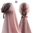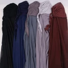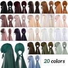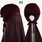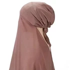 Description Material Chiffon+Inner Cap Cotton Chiffon Hijab Size: 185 X70CM/ 72.83X 27.56inch Convenient & Instant Wear : This Muslim hijab offers an effortless and quick - to - wear solution. The bonnet design, combined with the attached chiffon shawl, allows you to put it on in an instant, saving you precious time in your daily routine. No more struggling with multiple pieces of fabric; it's a one - piece wonder that simplifies the hijab - wearing process. Comfortable & Stretchy : Crafted with high - quality materials, the inner headband of this hijab is stretchy, ensuring a snug yet comfortable fit for various head sizes. The chiffon shawl is soft against the skin, providing breathability and preventing any irritation. Whether you're going about your daily errands, attending religious events, or working, this hijab offers all - day comfort. Stylish & Versatile : The elegant laurel green color and the well - designed turban - like style make this hijab not only functional but also stylish. It can be paired with different outfits, from casual wear to more formal attire, adding a touch of grace and modesty. The design is also versatile enough to be adjusted and styled in different ways, allowing you to express your personal fashion sense while adhering to your religious and cultural preferences.