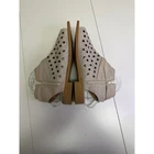 Musse & Cloud women's silver studded cutout peep toe ankle strap sandals. These stylish sandals feature a metallic silver finish with all-over stud detailing and a cutout design. An adjustable ankle strap with buckle closure ensures a secure fit, and a low block heel provides subtle lift. A side zipper allows for easy on and off. Style: Gladiator Department: Women Upper Material: Leather Heel Style: Flat EU Shoe Size: 40 Features: Adjustable Strap, Straps, Buckle, Ankle Strap, Padded Closure: Zip Accents: Studded, Glitter Type: Sandal Outsole Material: Rubber Lining Material: Leather Shoe Width: Standard Occasion: Casual Keywords: Musse and Cloud, silver sandals, studded sandals, cutout sandals, peep toe sandals, ankle strap sandals, Made in Spain, women's sandals, gladiator sandals, summer shoes, fashion sandals, Anthropologie, neutral