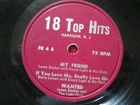 18 Top Hits (note: this is the record label name, there are only 6 songs on this record) My Friend/If You Love Me Really Love Me/Wanted/I'm A Fool To Care/Cinnamon Sinner/ Dream 78 rpm Note: has scuffing PLEASE NOTE THE FOLLOWING: PLEASE PHOTOS FOR CONDITION OF LABELS Condition: all records that I have listed will be from local estates and are used. They are not in mint condition. I have not played or tested any records unless stated above. Each may have scuffing , scratches , dust, fingerprints, wear, fading, tears, writing on label and/or sleeve and other issues . May not have an inner sleeve. Covers may have scuffing, fading, tears, stains and other issues. _________________________________________________________ Please note that I am not a professional grader. I can only provide information about the items' conditions and not about a certain level of grading.