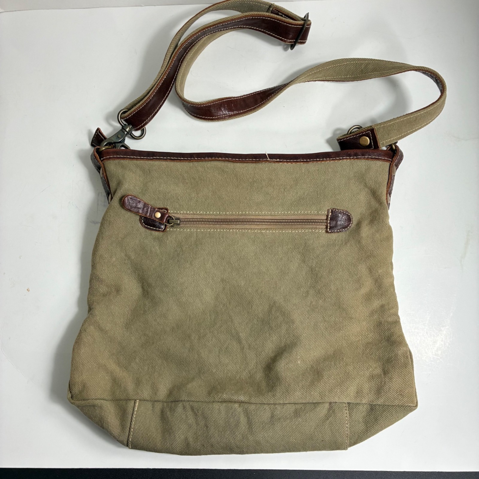 Myra Bag Thrill & Chill Aztec Print Crossbody Bag Canvas Leather Some light stains inside and out. See pics. No rips, tears or holes. Great pre-owned condition! Detachable, adjustable crossbody strap Zip closure on the top 1 external zip pocket Leather trim 13” x 13” 39-8476 15 oz Indie, Utility, Retro